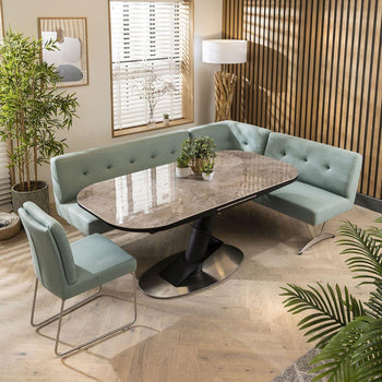 Deco & Arlo 8 Seater Extendable Corner Bench Dining Set Green & Grey Ceramic LRBB