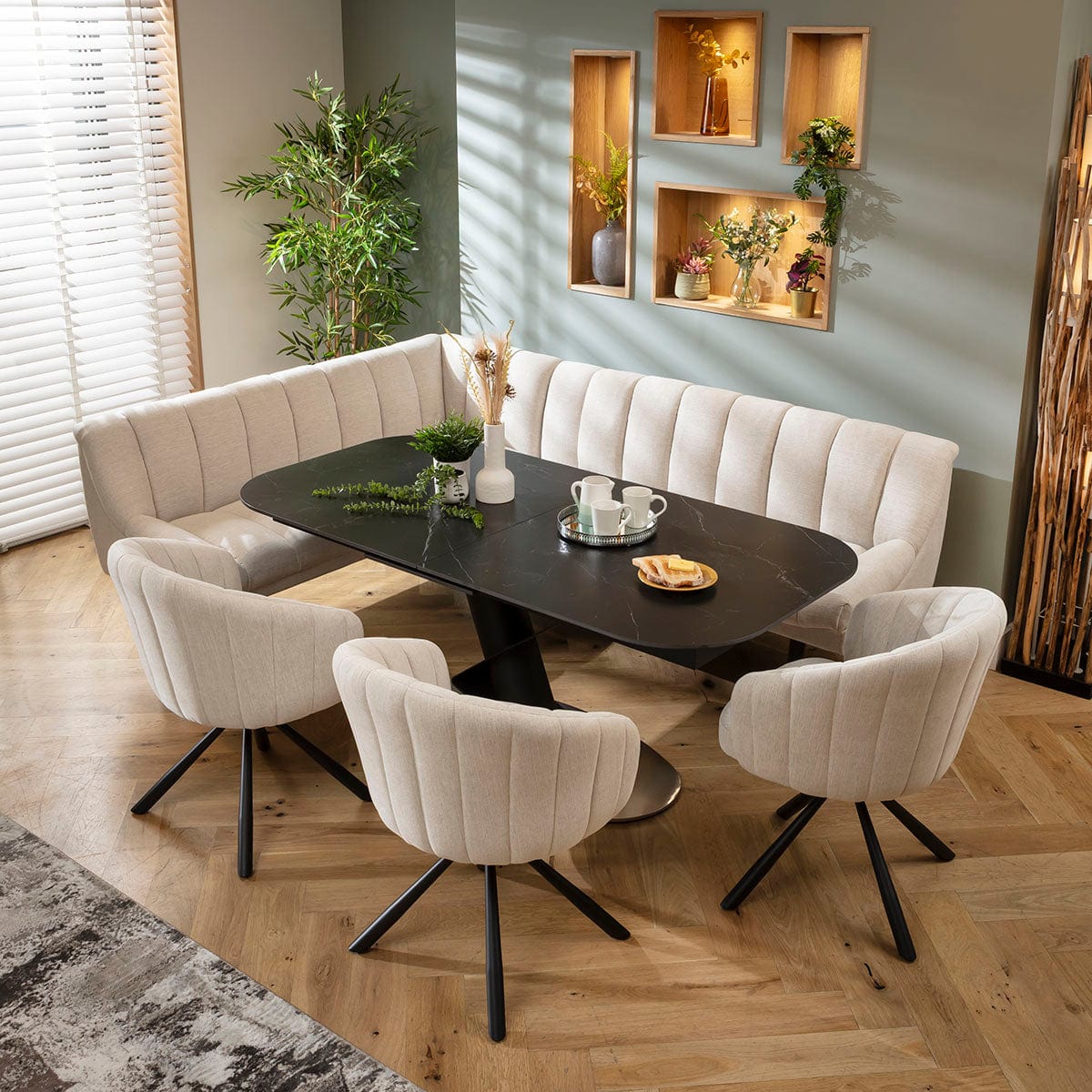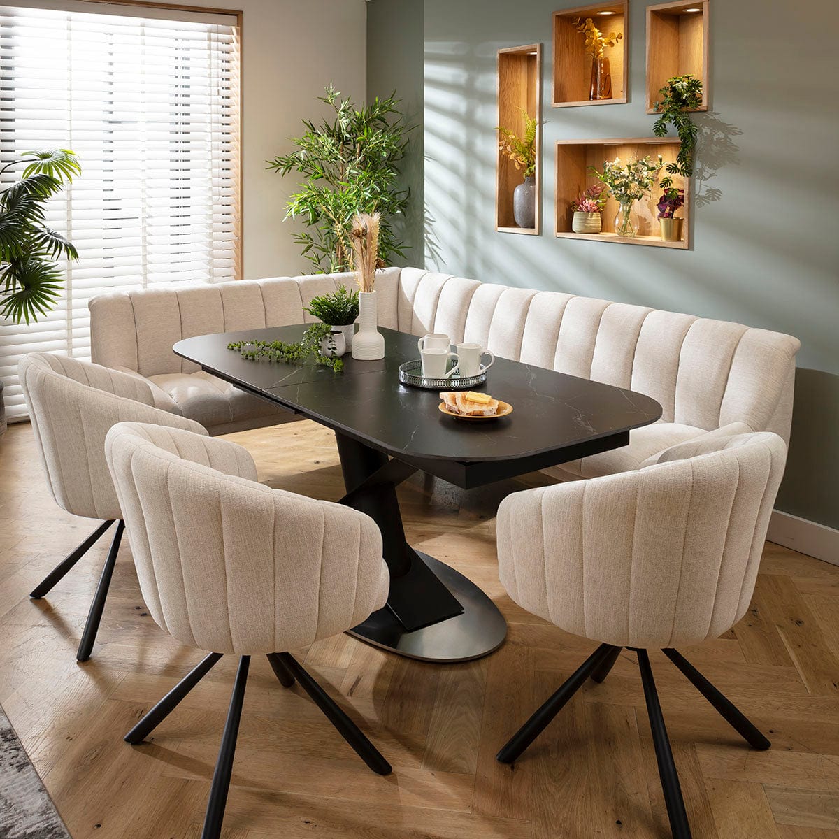Harvey & Vertex 8 Seater Extendable Corner Bench Dining Set Stone & Black Ceramic R3