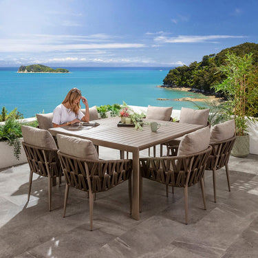 ZigZag & Atlas 8 Seater Extendable Outdoor Garden Dining Set Brown Rope & Beige Aluminium