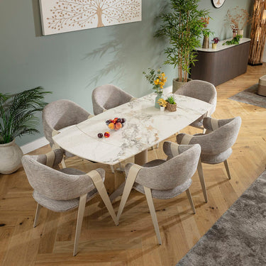 Freya & Johnson 6 Seater Extendable Dining Set Grey & White Ceramic