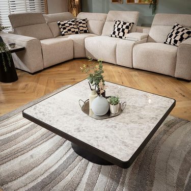 This modern coffee table combines striking design with exceptional craftsmanship. A large square coffee table with a spacious surface, it blends ceramic and oak veneer for lasting style. As both a luxury coffee table and a practical centrepiece, it delivers the elegance of a ceramic coffee table with stone-like durability.