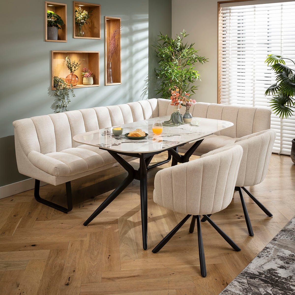 Harvey & Conor 7 Seater Extendable Corner Bench Dining Set Stone & White Ceramic L2