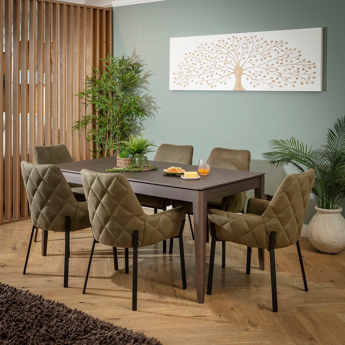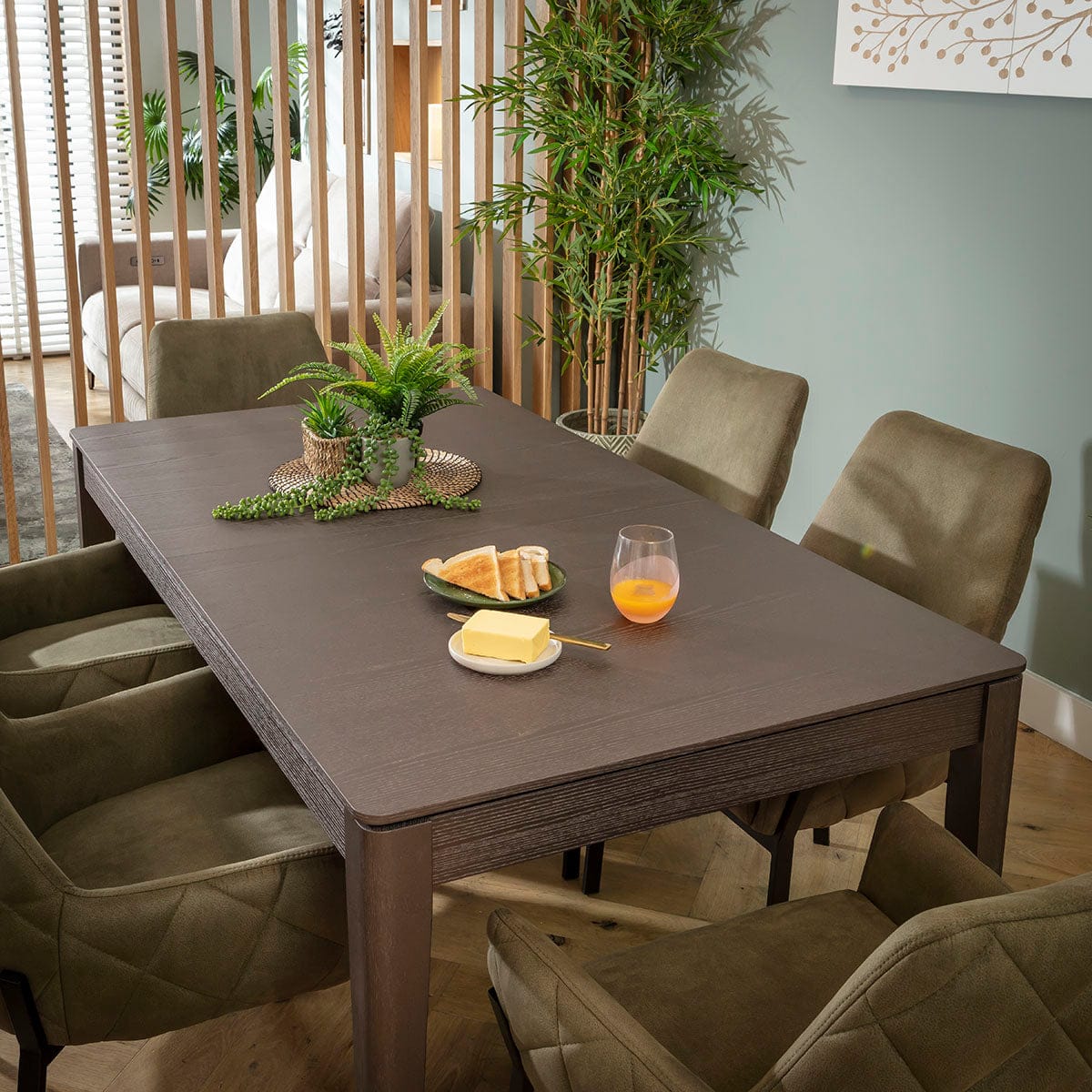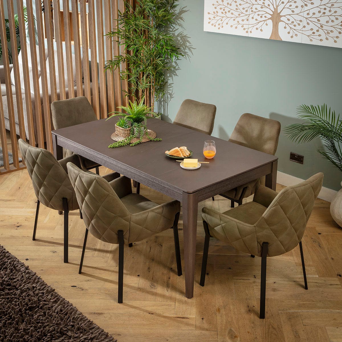 Cora & Ruben Large 6 Seater Extendable Dining Set Green & Brown Wood