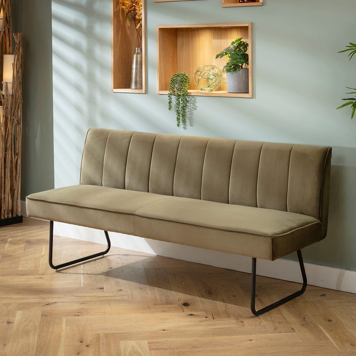 The Deco Dining Bench Set is a versatile and stylish seating solution for any dining space. The two benches can comfortably seat up to 3 people each with supportive backrests. Dining benches offer a perfect gathering spot for friends and family. The premium olive green velvet upholstery is luxurious in its richness and vibrancy.