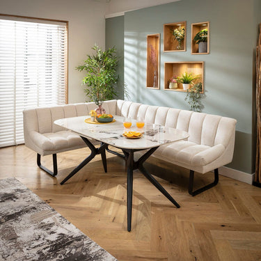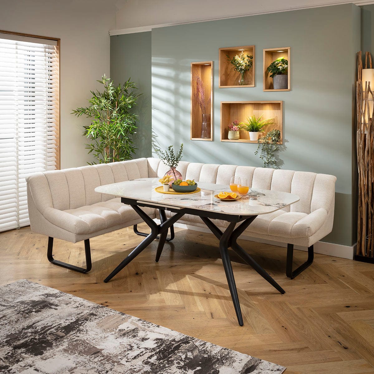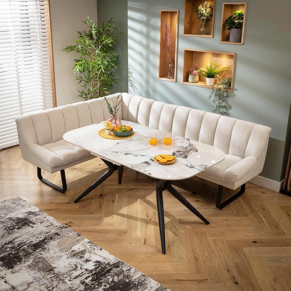 Harvey & Conor 5 Seater Extendable Corner Bench Dining Set Stone & White Ceramic RT