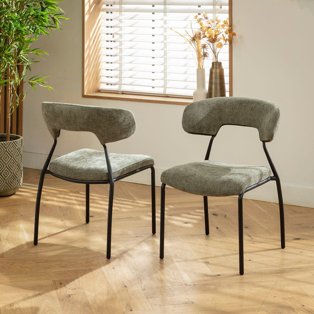 Elevate your dining space with these Oscar fabric dining chairs - a modern dining chair inspired by Scandi minimalism. The 6 contemporary green kitchen chairs combine a sleek black metal frame with a premium upholstered seat and backrest, offering supportive comfort and timeless style. Exclusive to Quatropi, these scandi dining chairs are built for durability and elegance.
