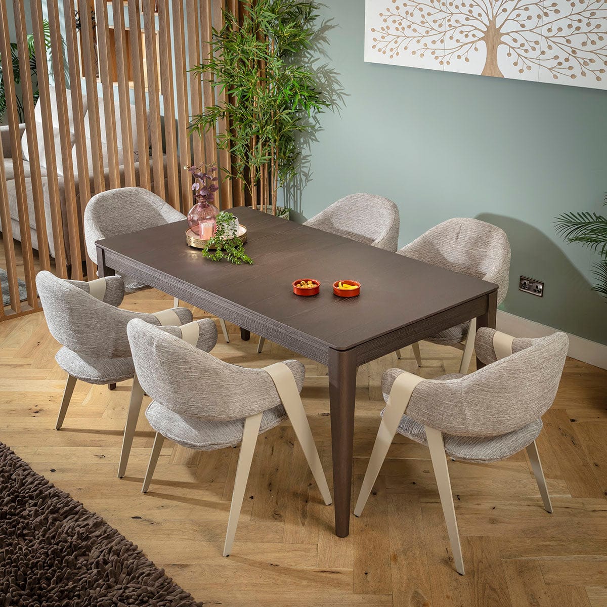Freya & Ruben Large 6 Seater Extendable Dining Set Grey & Brown Wood