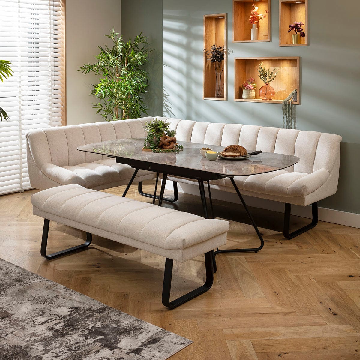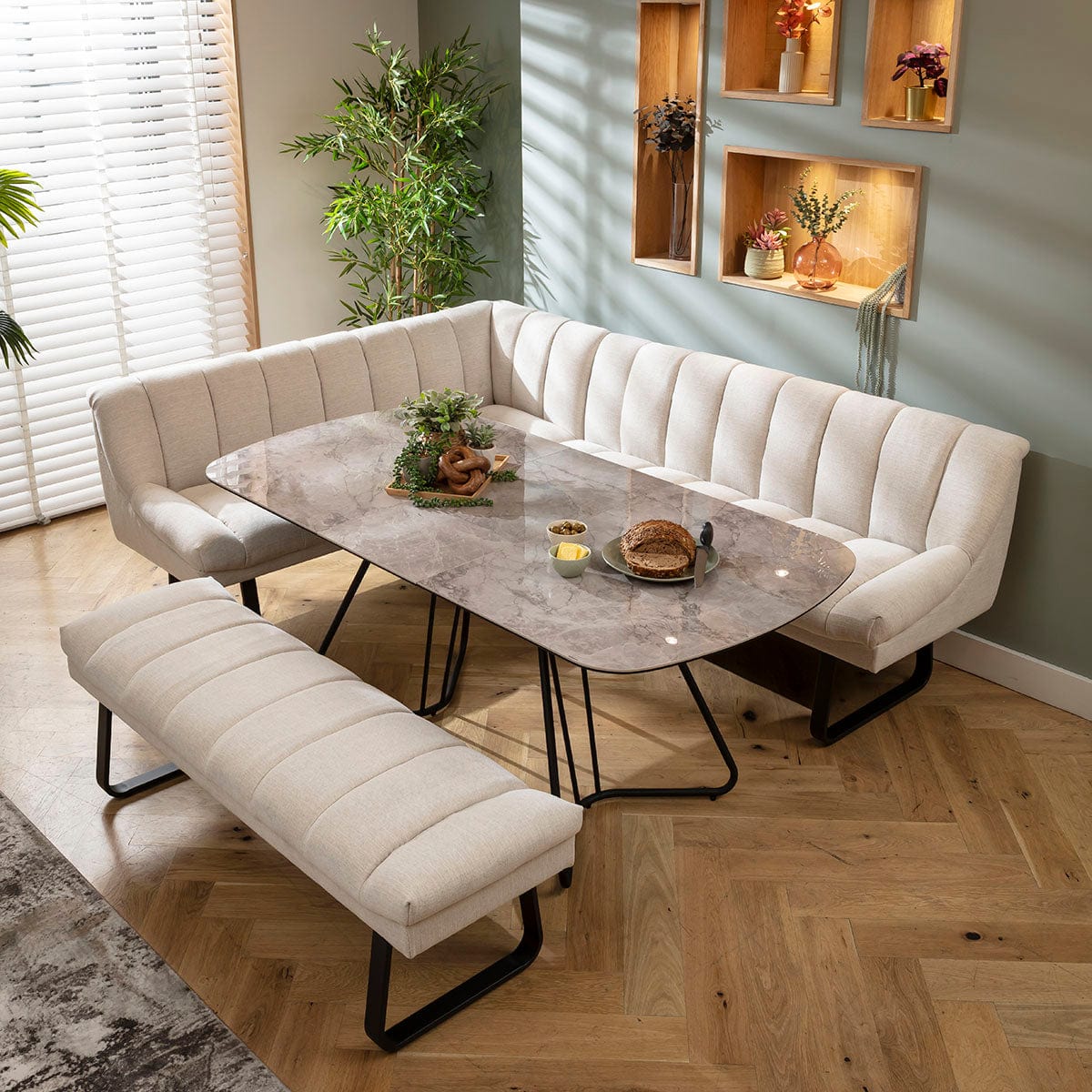 Harvey & Deco 8 Seater Extendable Corner Bench Dining Set Stone & Grey Ceramic LBB