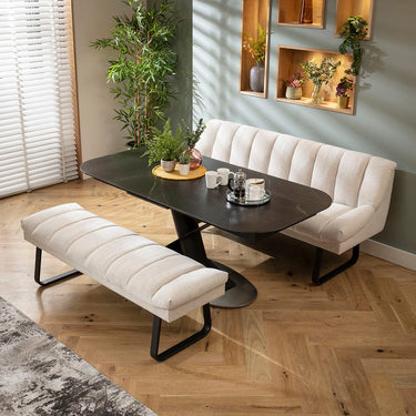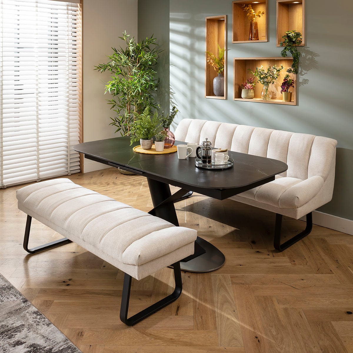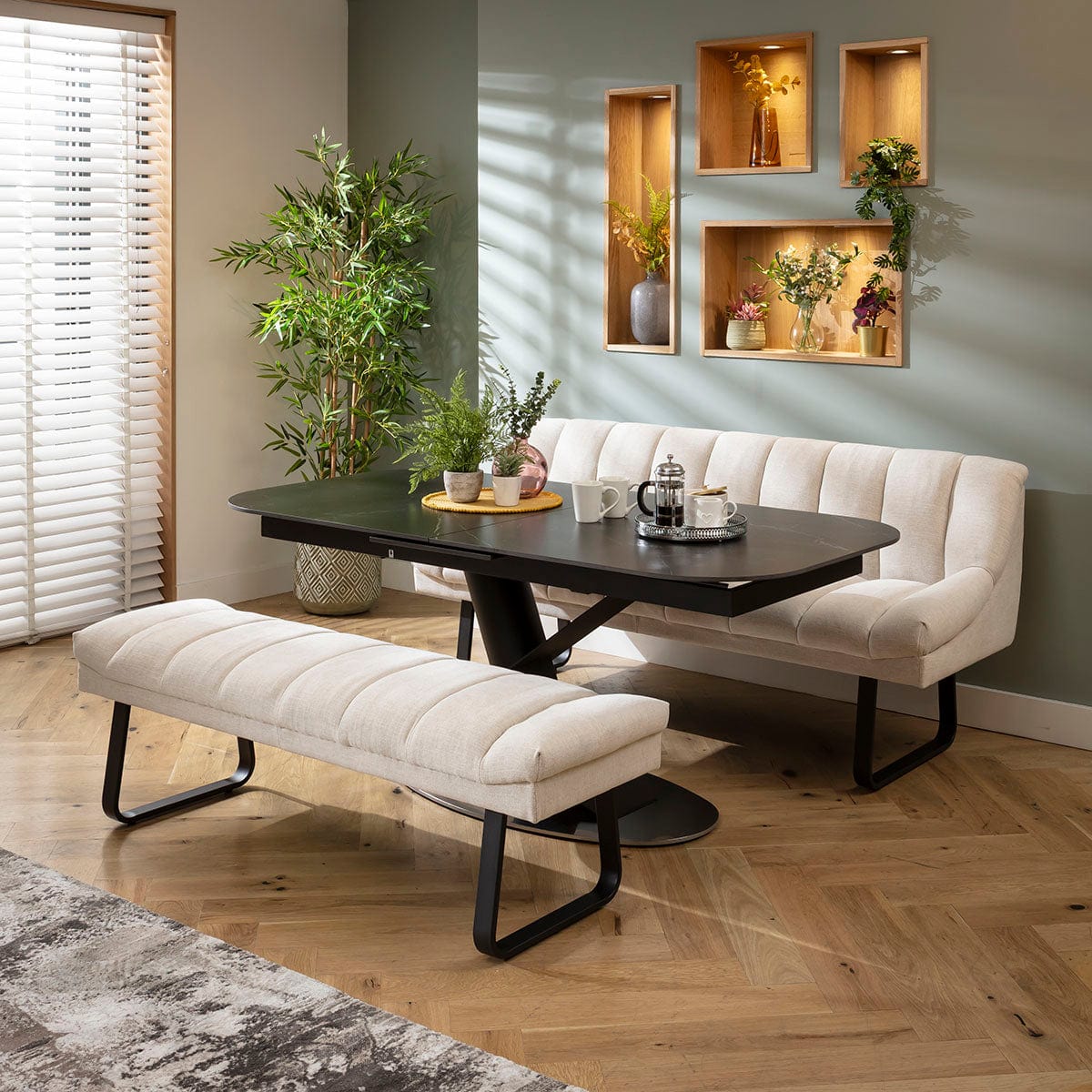 Harvey & Vertex 6 Seater Extendable Bench Dining Set Stone & Black Ceramic XBT