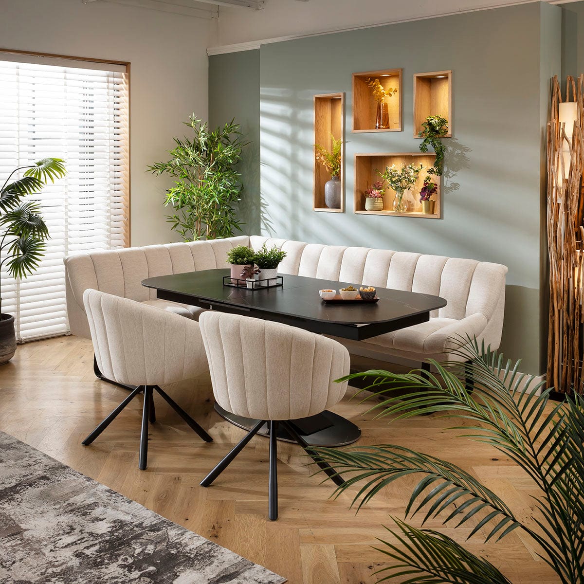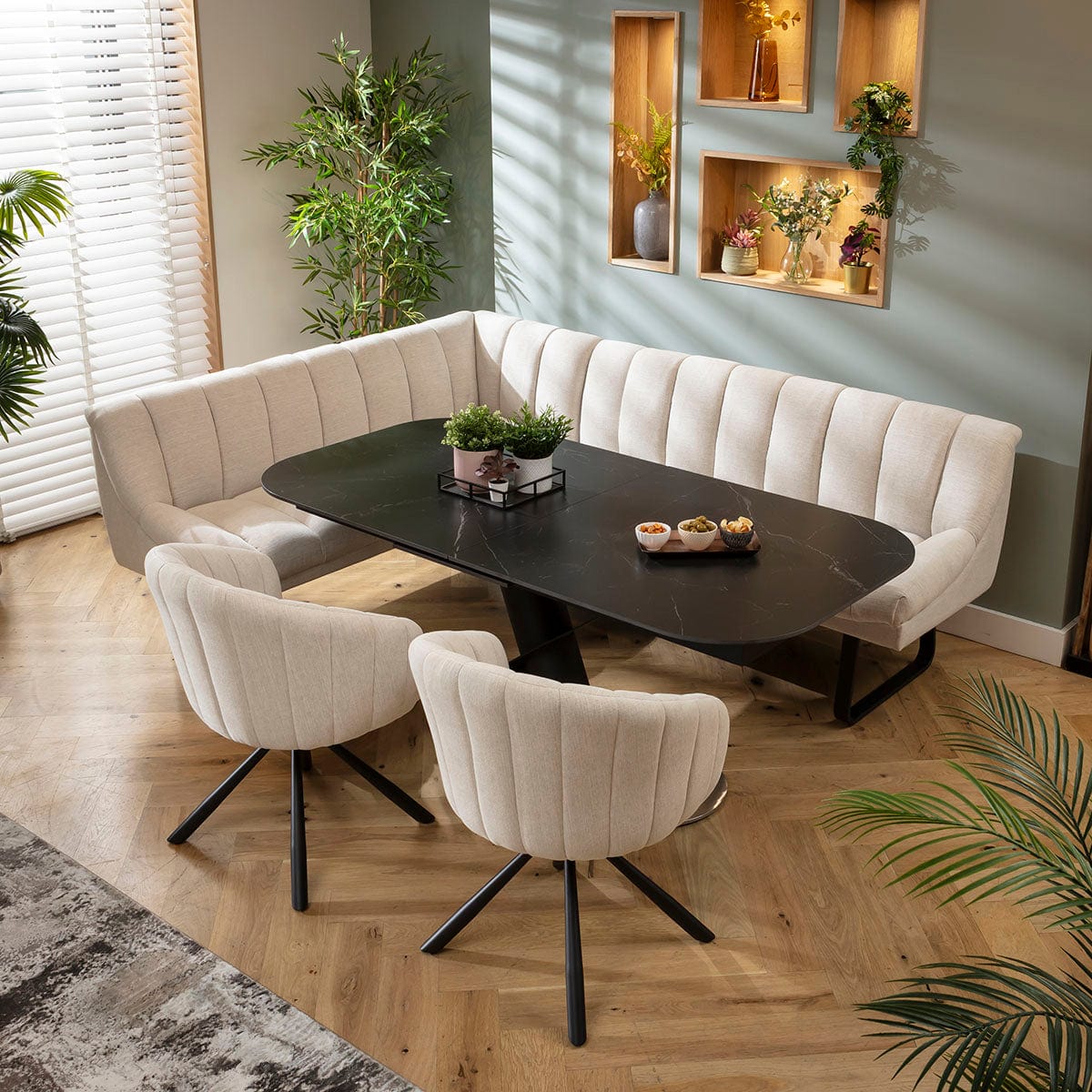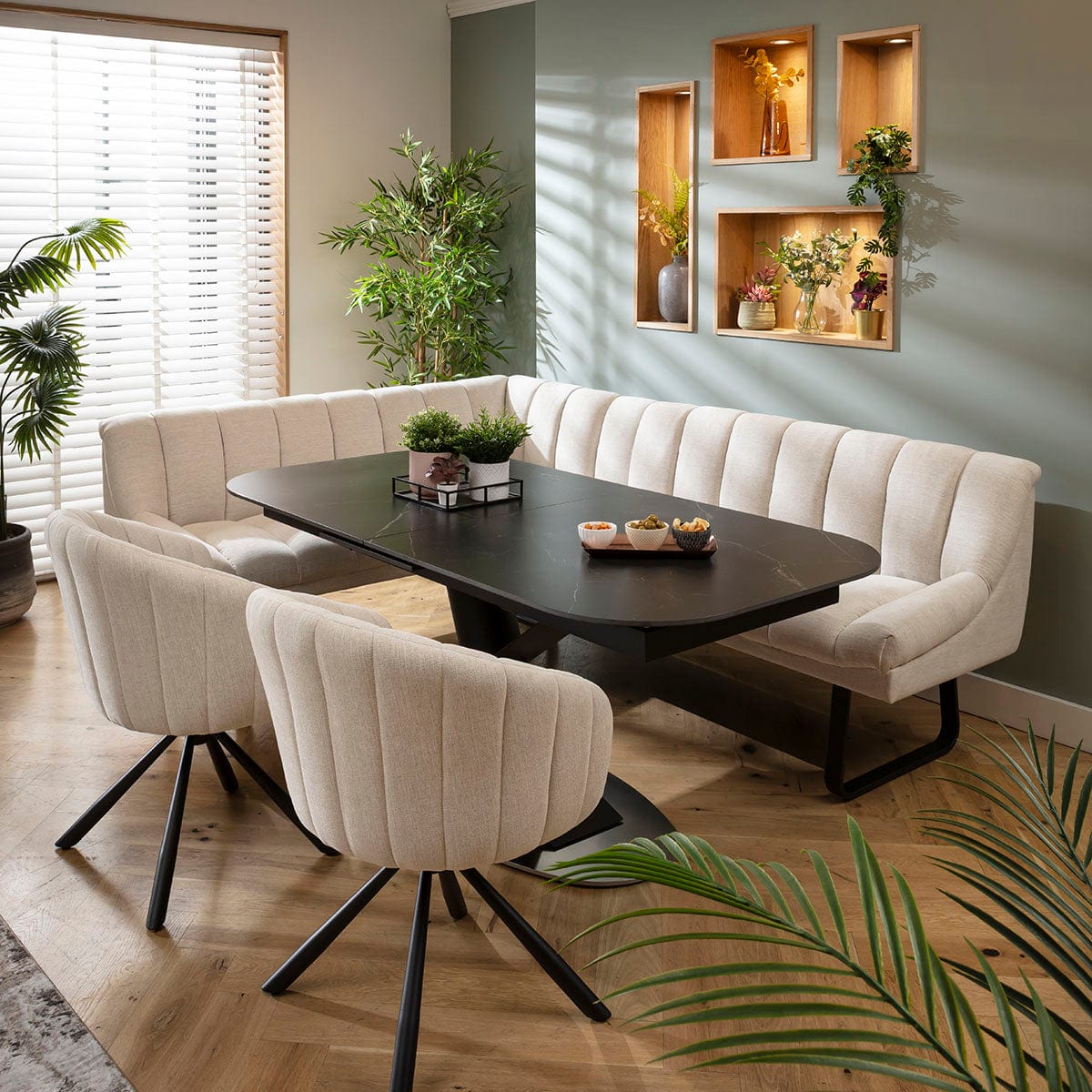 Harvey & Vertex 7 Seater Extendable Corner Bench Dining Set Stone & Black Ceramic R2