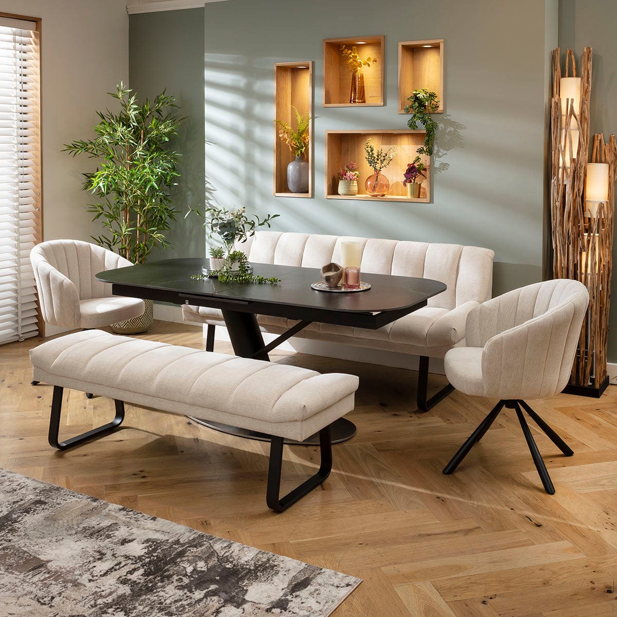 Harvey & Vertex 8 Seater Extendable Bench Dining Set Stone & Black Ceramic XB2