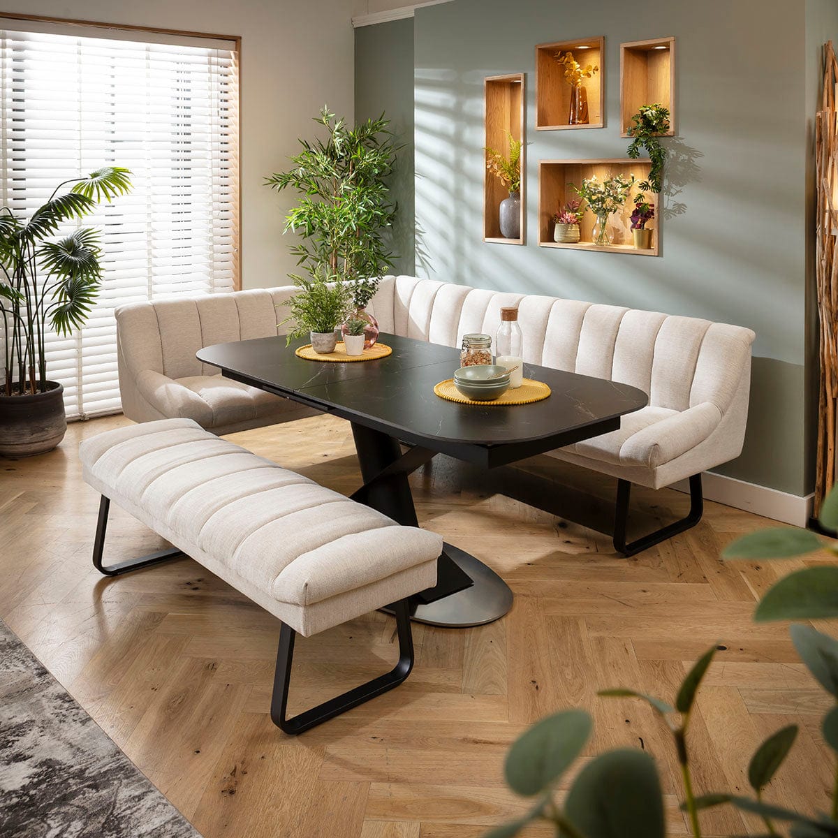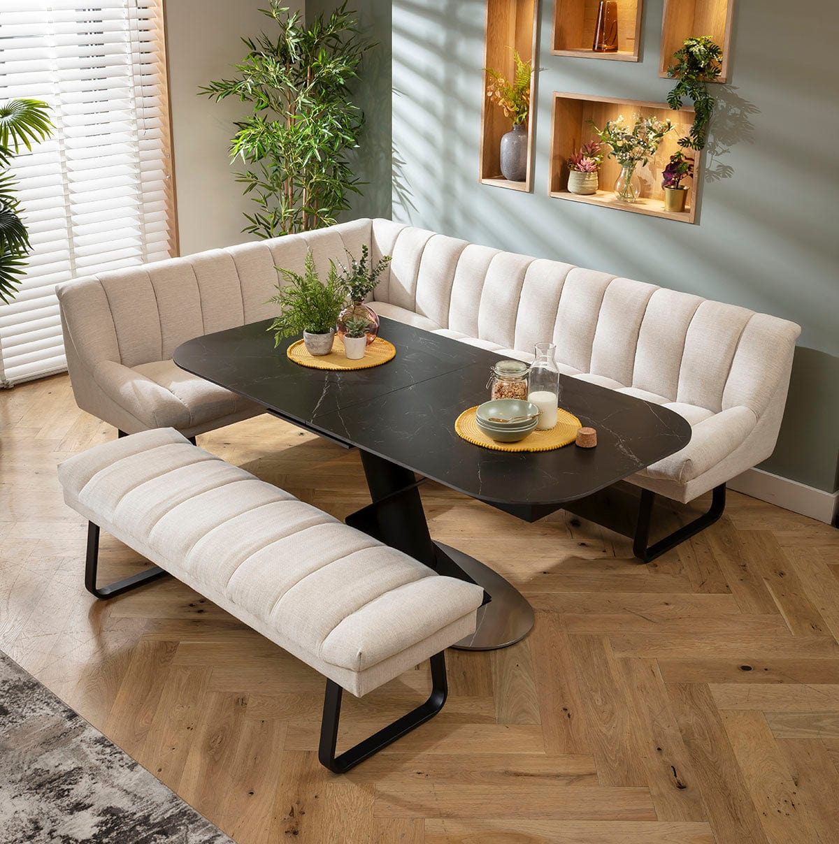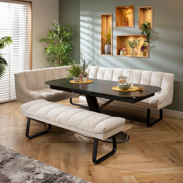 Harvey & Vertex 8 Seater Extendable Corner Bench Dining Set Stone & Black Ceramic RBB