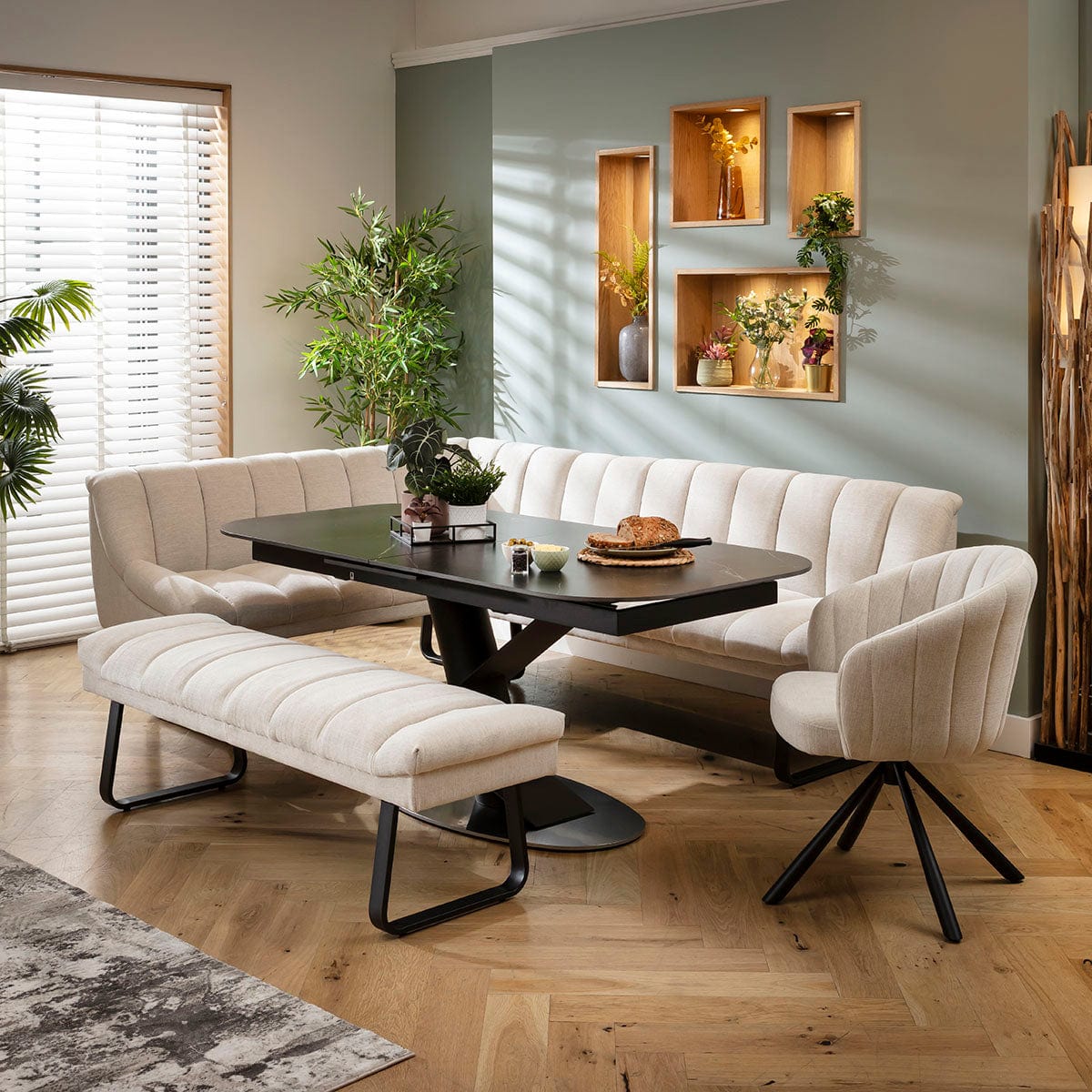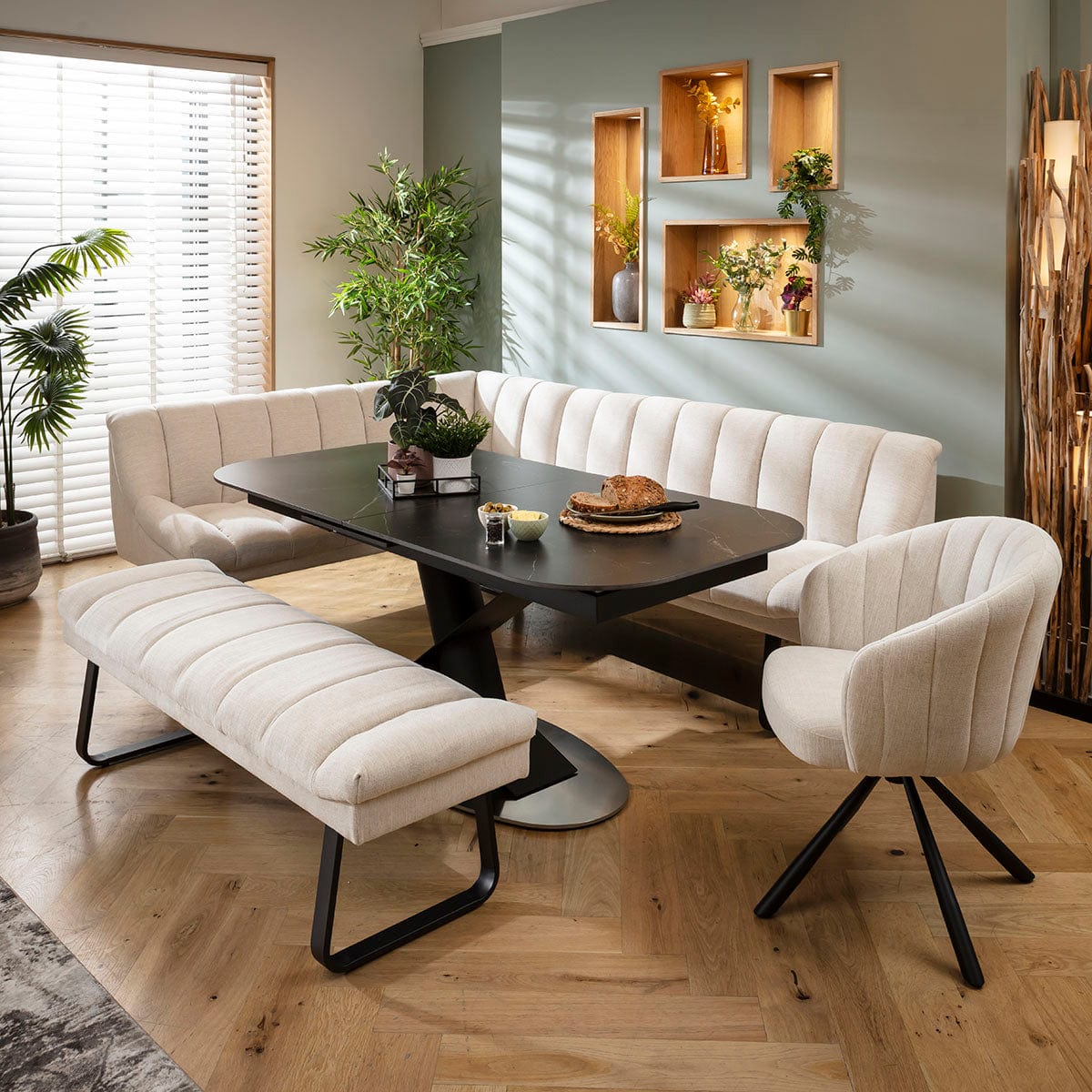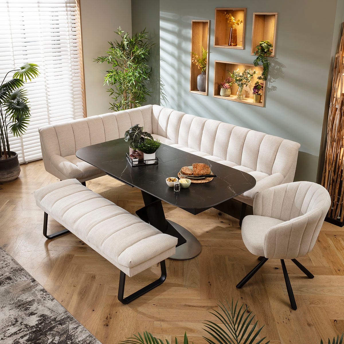 Harvey & Vertex 9 Seater Extendable Corner Bench Dining Set Stone & Black Ceramic RBB1