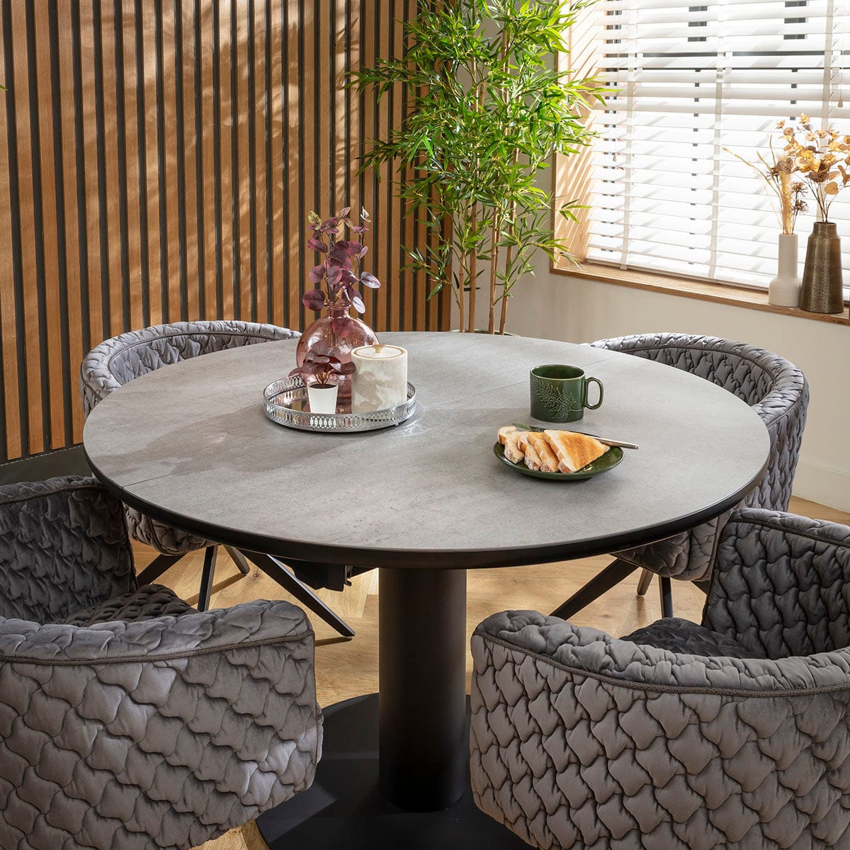 Maple & Venus 4 Seater Round Extendable Dining Set Grey Ceramic