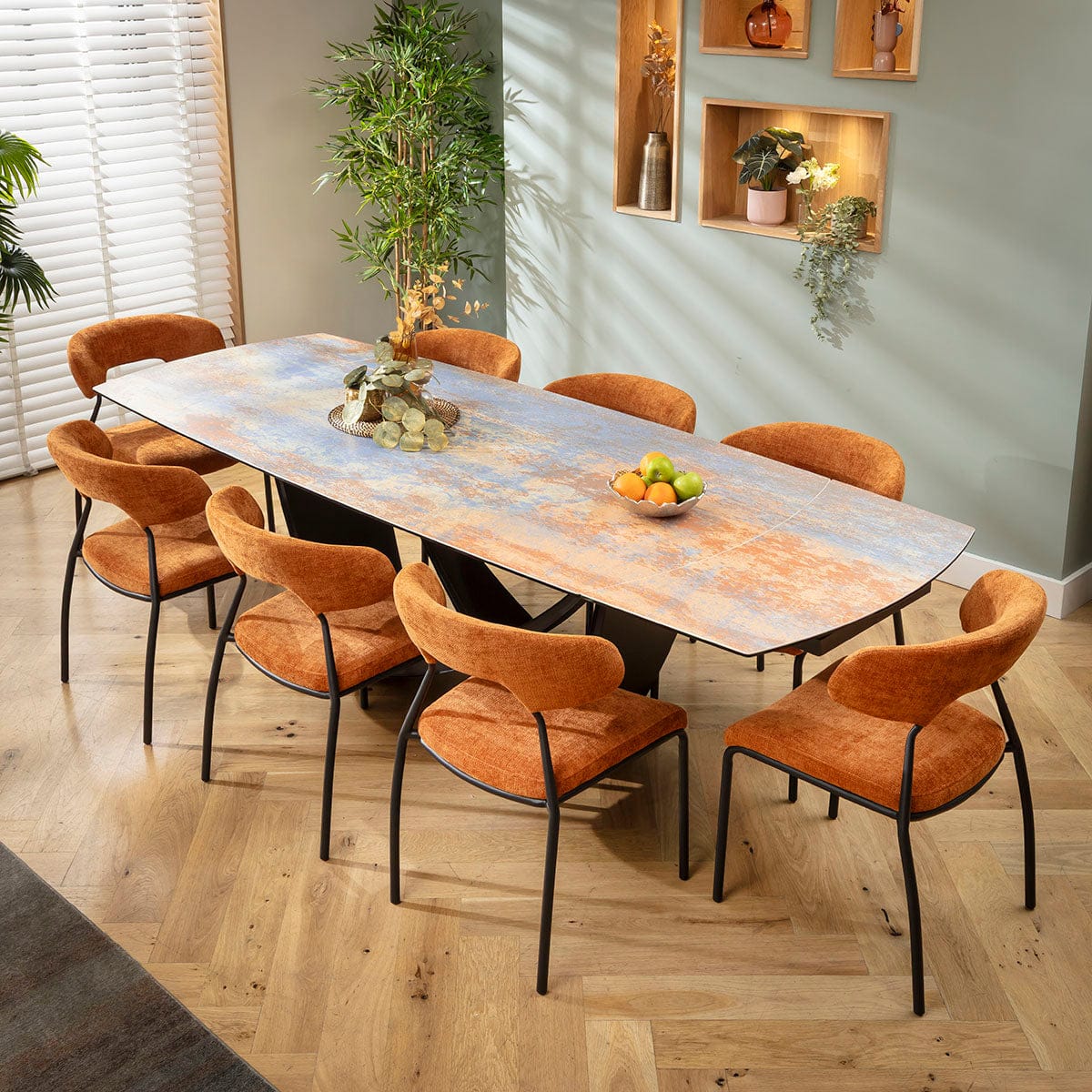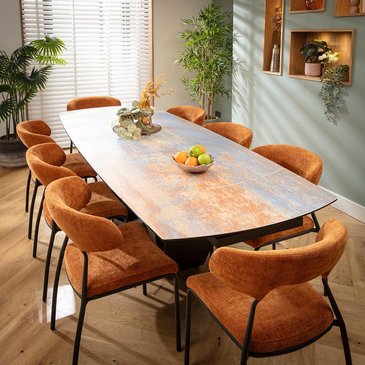 Oscar & Zelda 8 Seater Extendable Dining Set Burnt Orange & Rustic Blue Ceramic