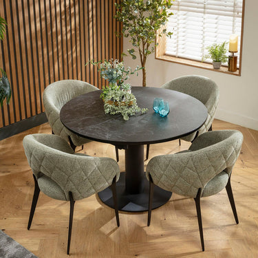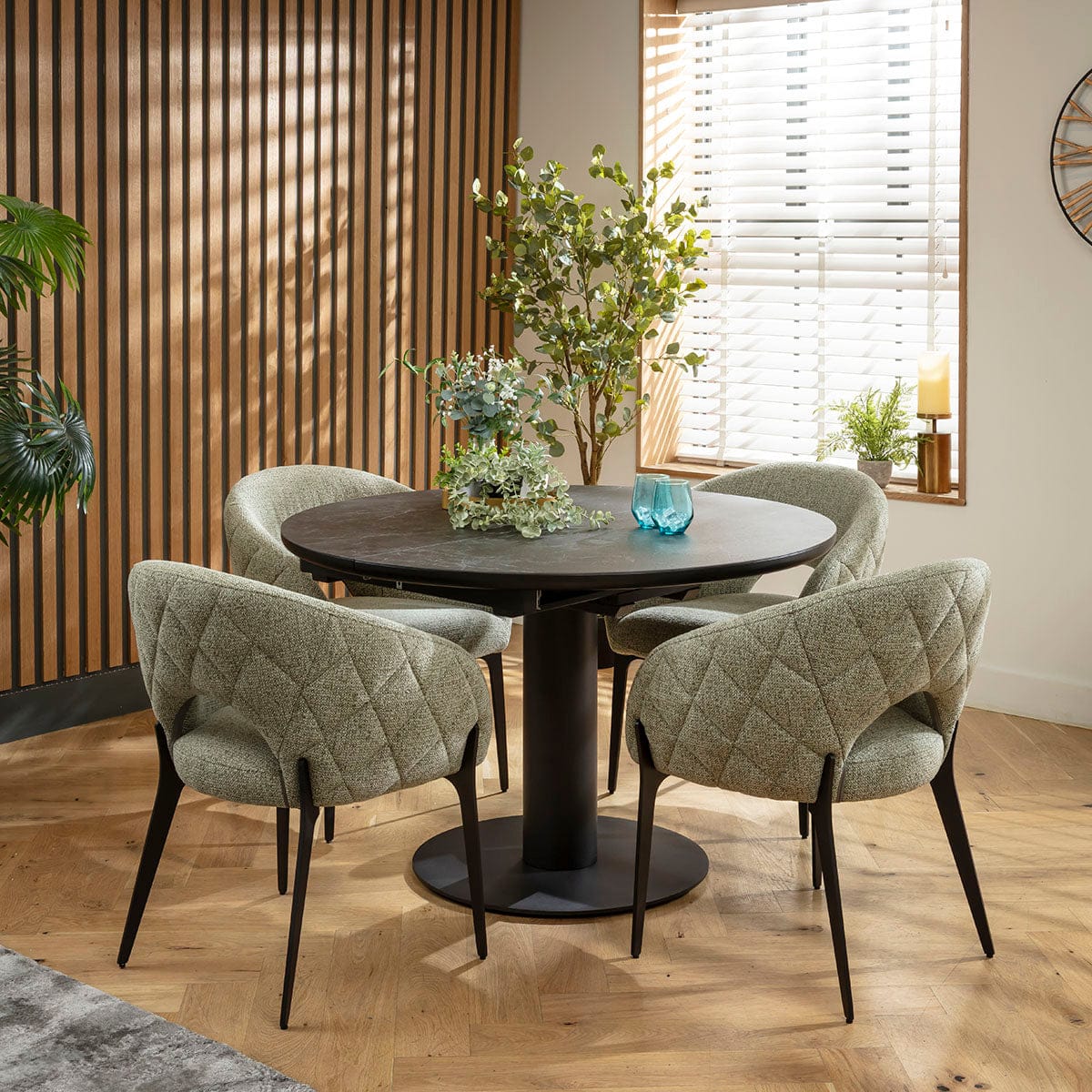 Piper & Venus 4 Seater Round Extendable Dining Set Green & Black Ceramic