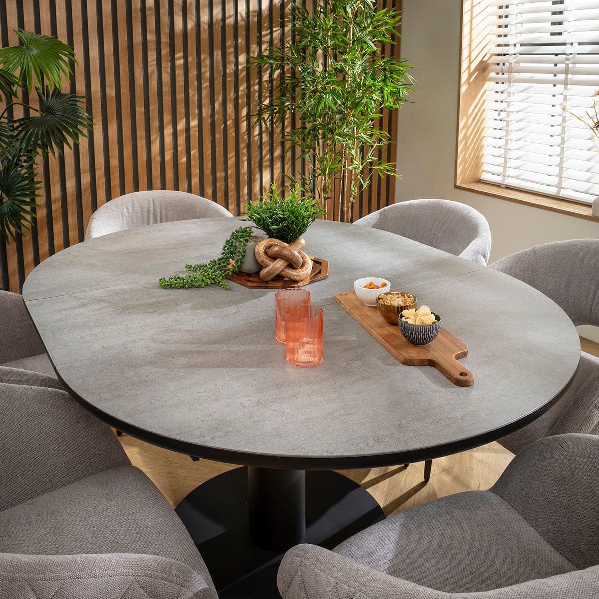 Piper & Venus 6 Seater Round Extendable Dining Set Grey Ceramic