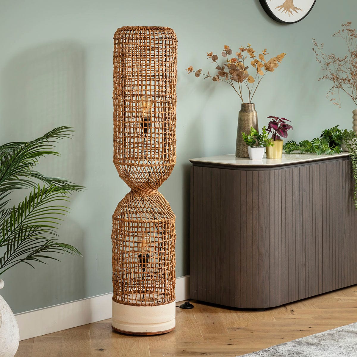 Niki Modern Stone Wicker Floor Lamp 140cm