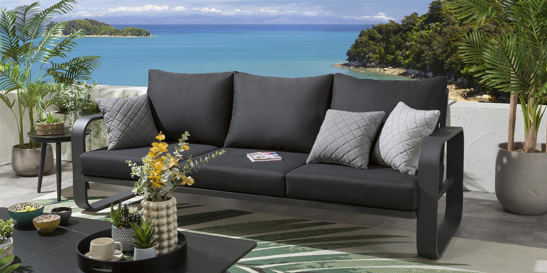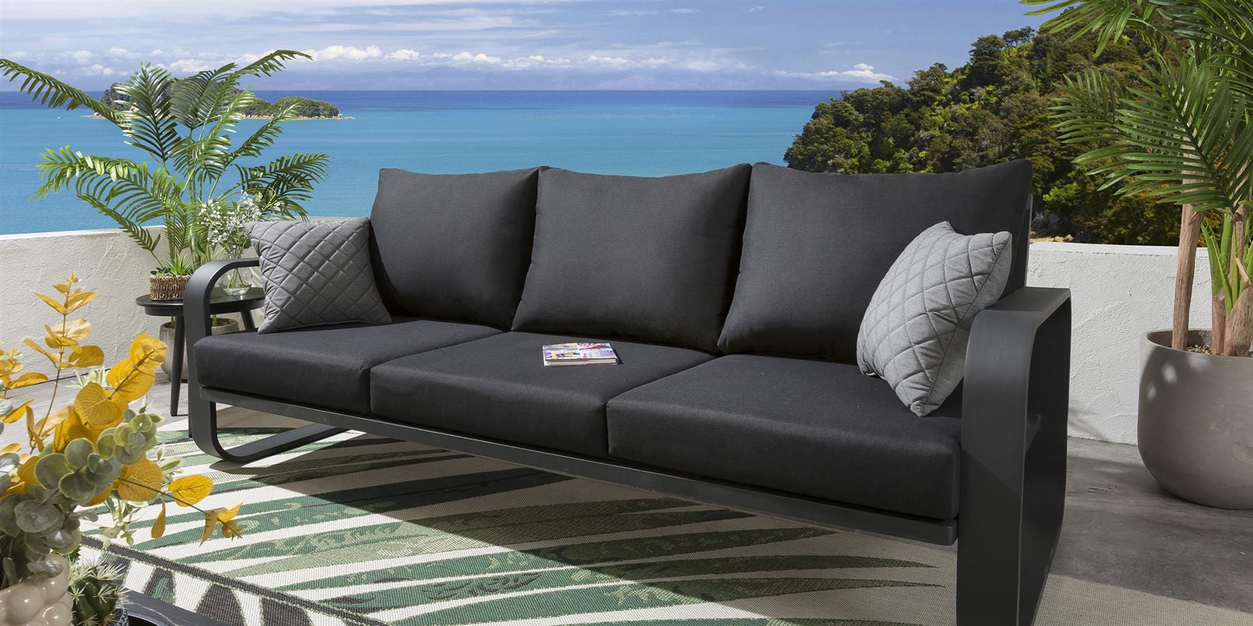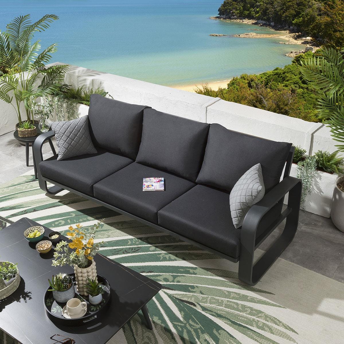 Freddy 3 Seater Outdoor Garden Sofa Charcoal 230cm