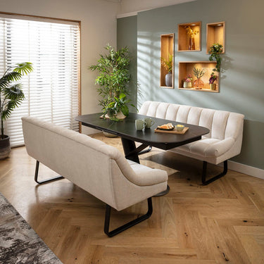 Harvey & Vertex 6 Seater Extendable Bench Dining Set Stone & Black Ceramic SBT