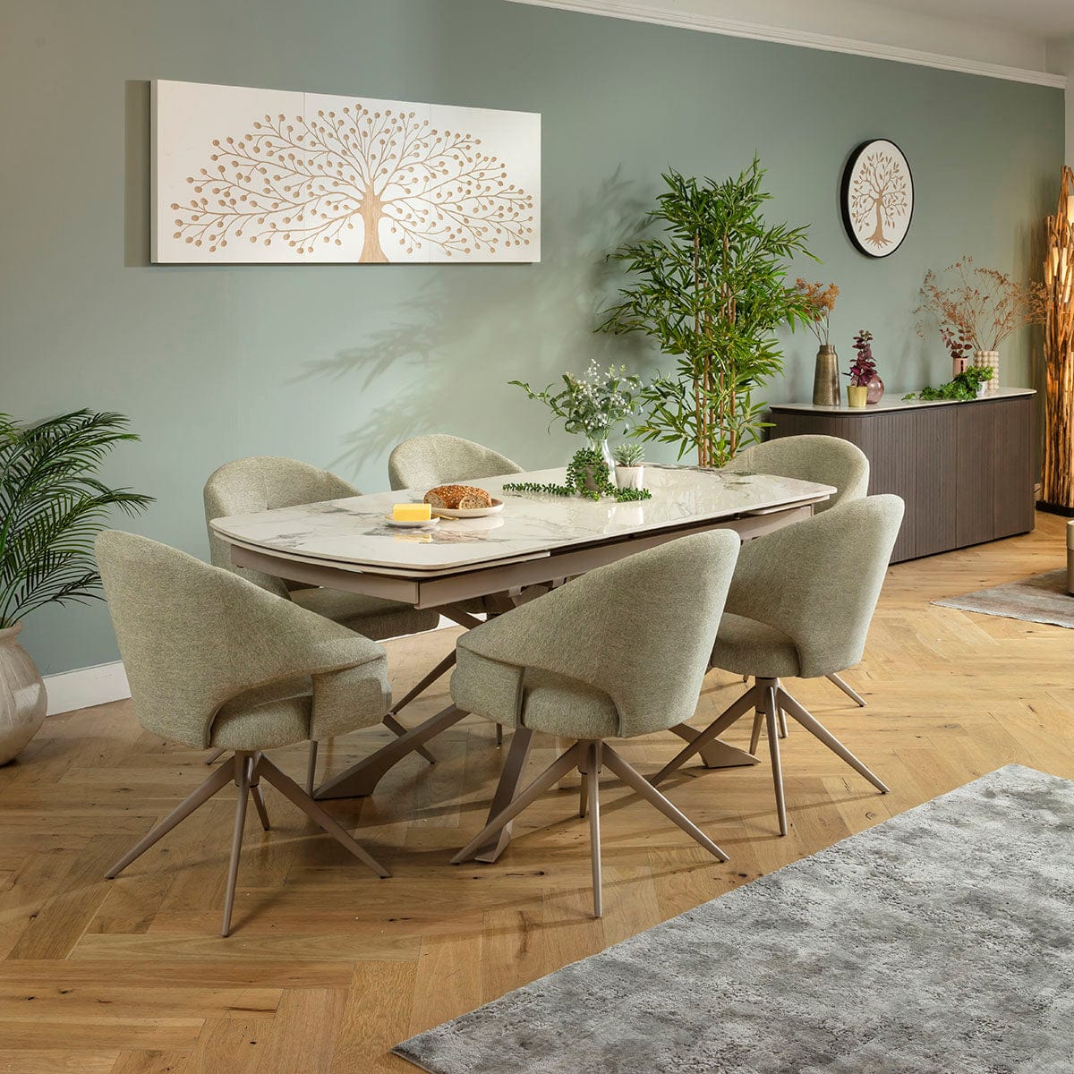 Every detail reflects premium materials and finishes, from the advanced fabrics to the high-quality steel structure, ensuring exceptional build quality. Crafted to last, it embodies the Quatropi commitment to quality - our promise and your guarantee. Pair these dining chairs with one of our modern dining tables - mix and match to create a personalised dining set tailored to your space and style.