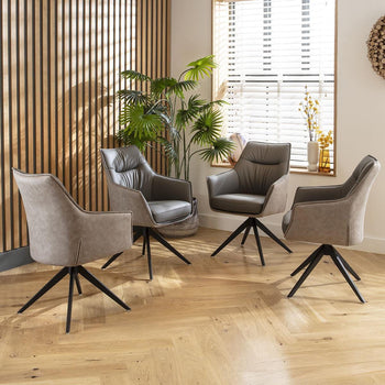 Our collection includes genuine real leather dining chairs and premium faux leather dining chairs - each expertly crafted with care and precision. Whether you prefer the texture of soft PU leather or the luxury of full-grain hide, every option showcases market-leading materials and attention to detail. Choose from elegant metal or wooden leg bases, including high-quality swivel dining chair designs. Quatropi means Quality - Our Promise, Your Guarantee.