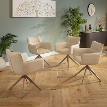 4 Ruby Carver Style Faux Leather Swivel Dining Chairs with Arms Beige