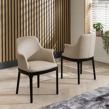 Dynasty Carver Faux Leather Dining Chair with Arms Beige