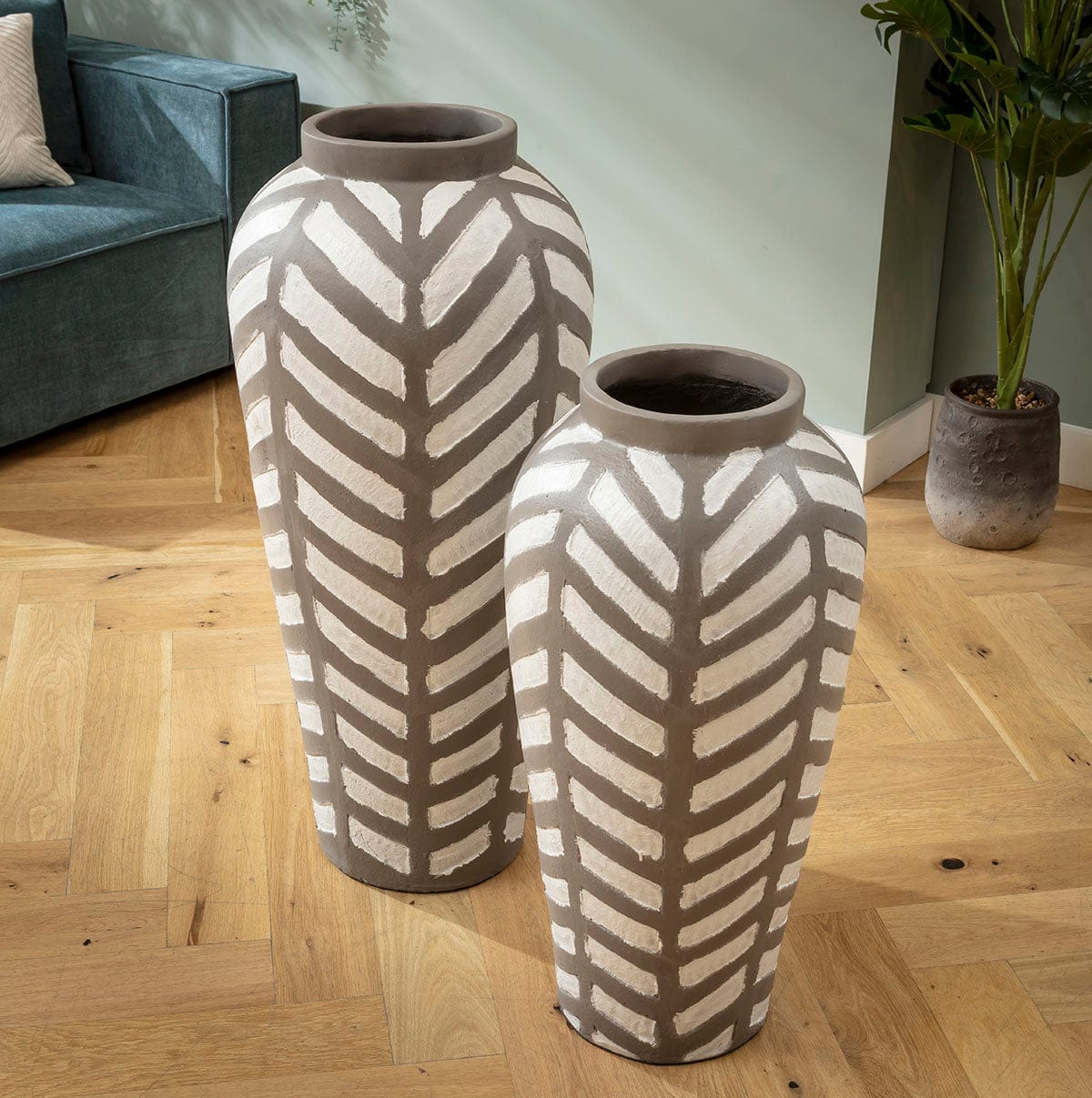 Medina Set of 2 Large Decorative Indoor Pots Vases Grey Zebra