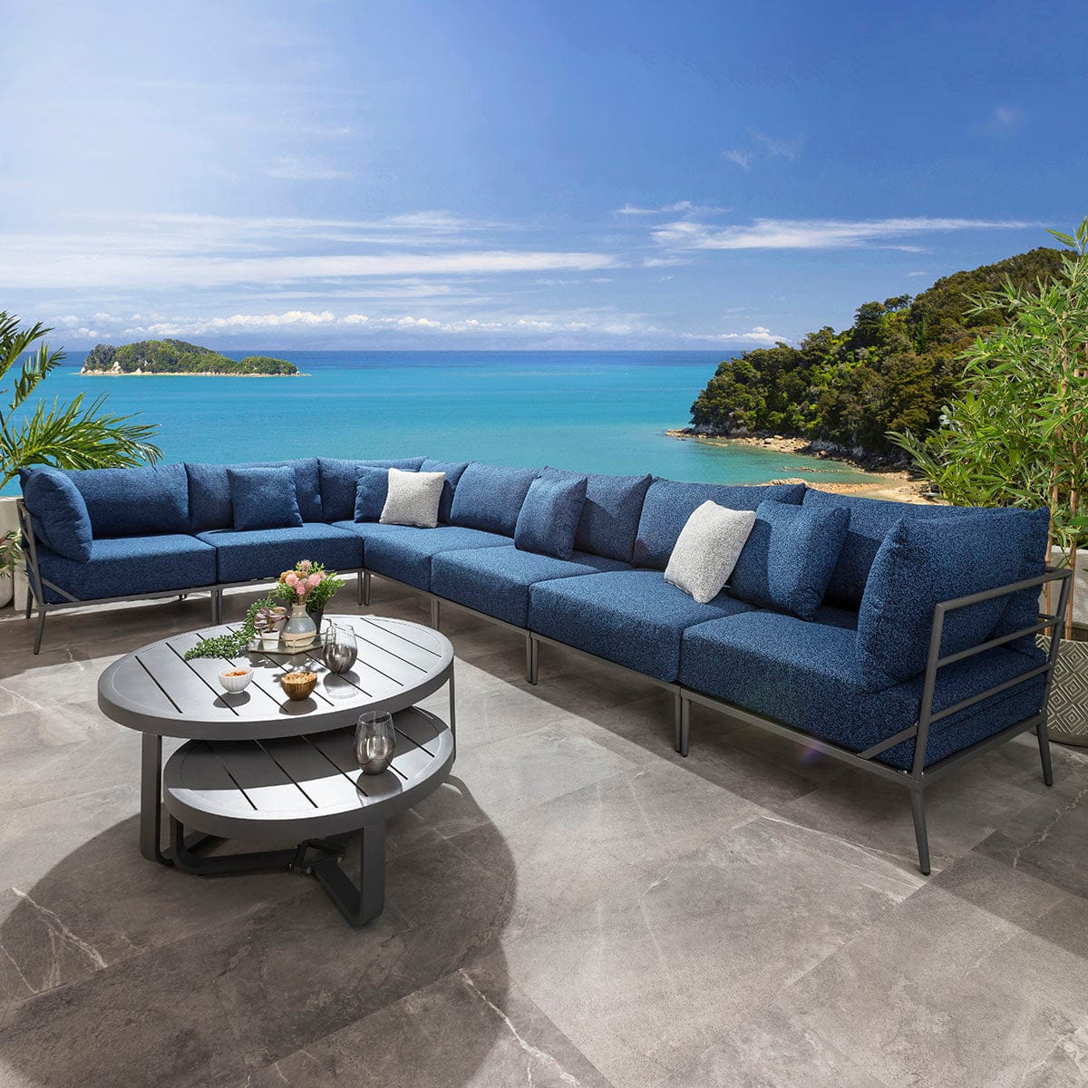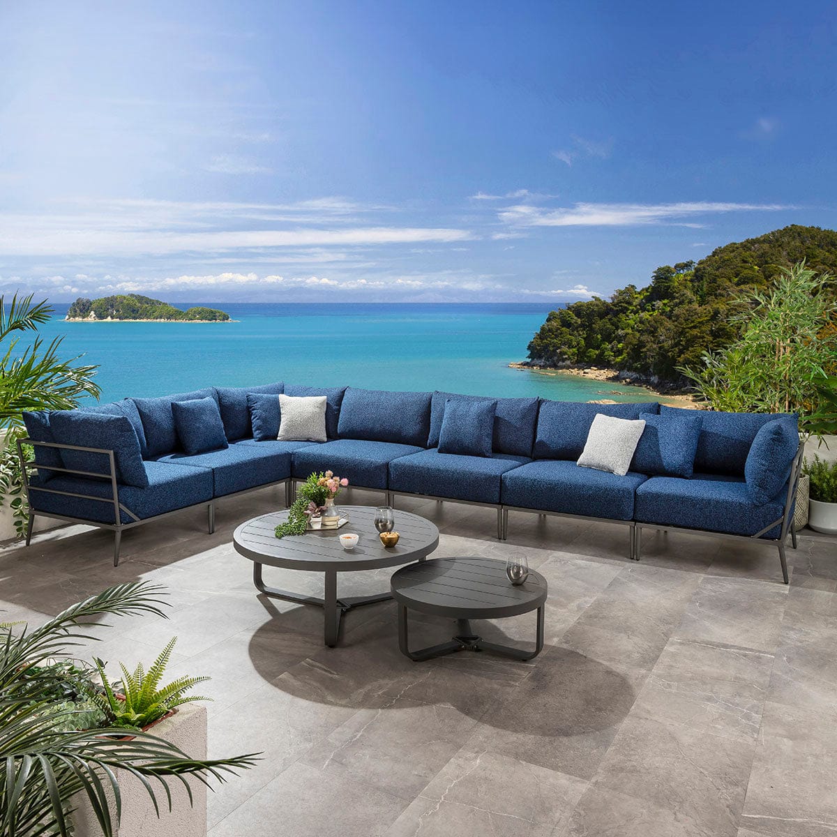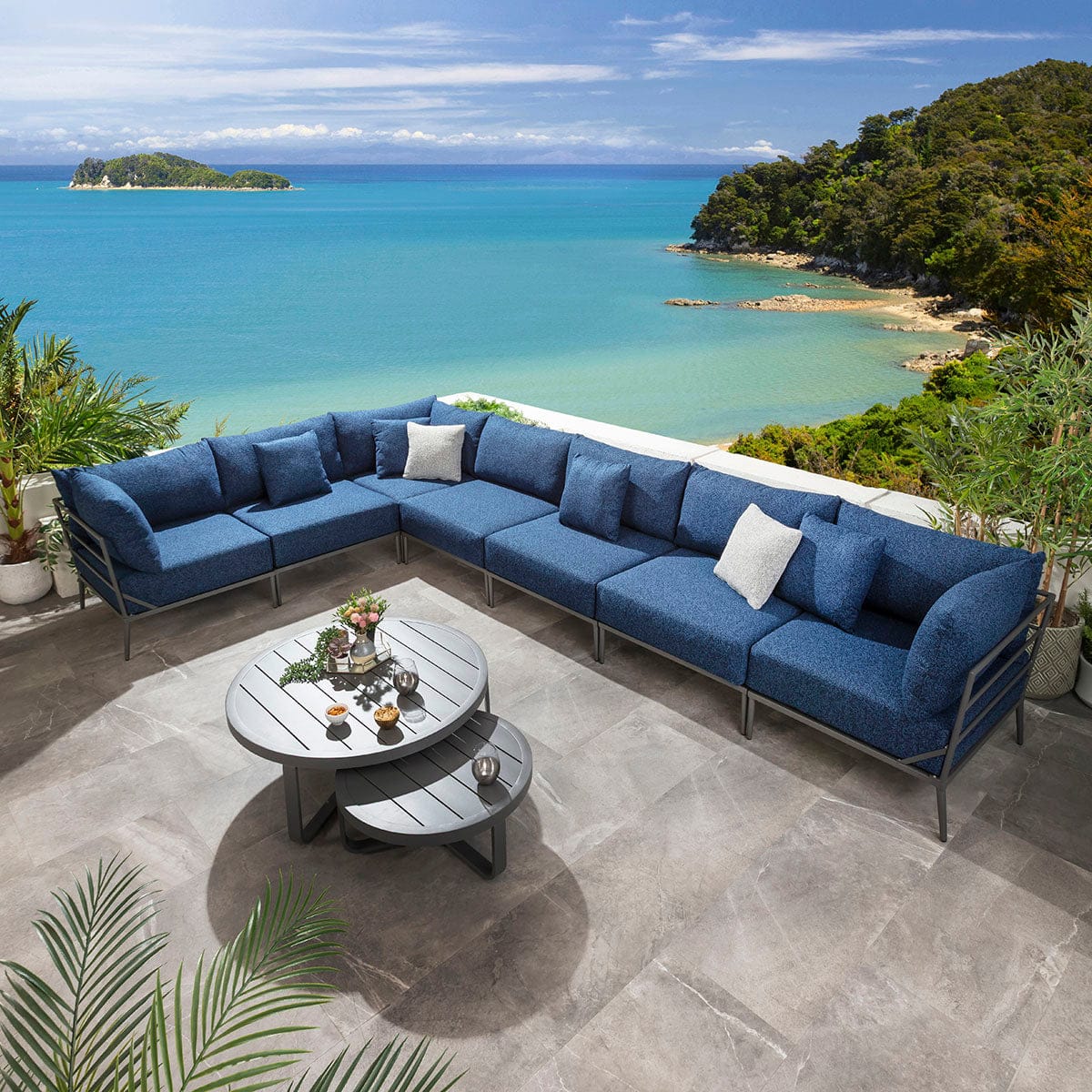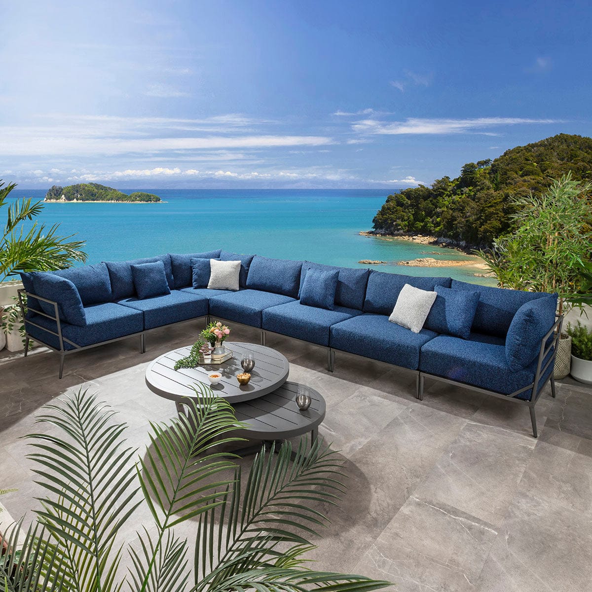 Cleo Modular Outdoor Garden Corner Sofa Set Midnight Blue 340x340cm L8