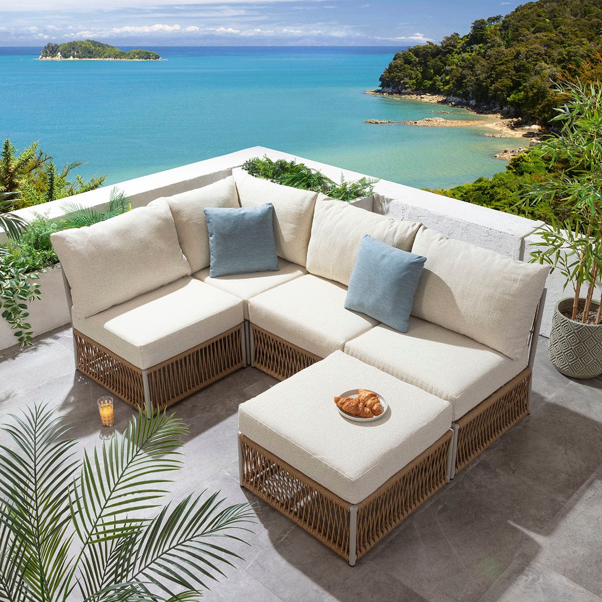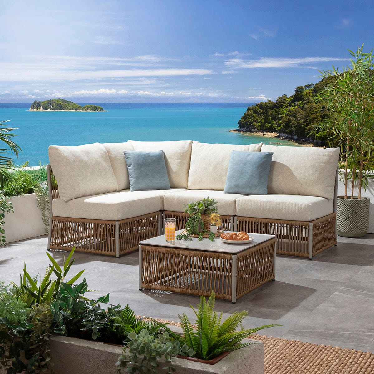 Cole Modular Outdoor Garden Corner Sofa Set Neutral Honey 214x144cm L5B