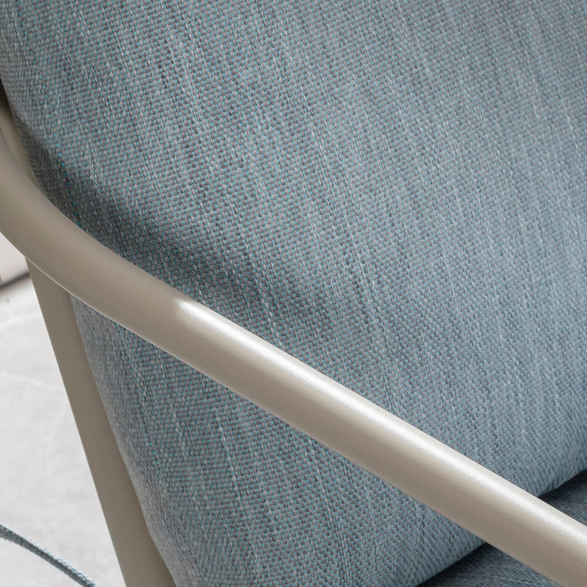 These modern garden chairs feature robust aluminium frames requiring no assembly, finished in a powder-coated crushed-almond grey. With no fixed fabric elements, they can remain outdoors and be used immediately after wet weather. Premium cushions in hardwearing sky blue outdoor fabric add comfort and should be stored when not in use. The streamlined silhouette balances practicality with a clean, contemporary aesthetic.