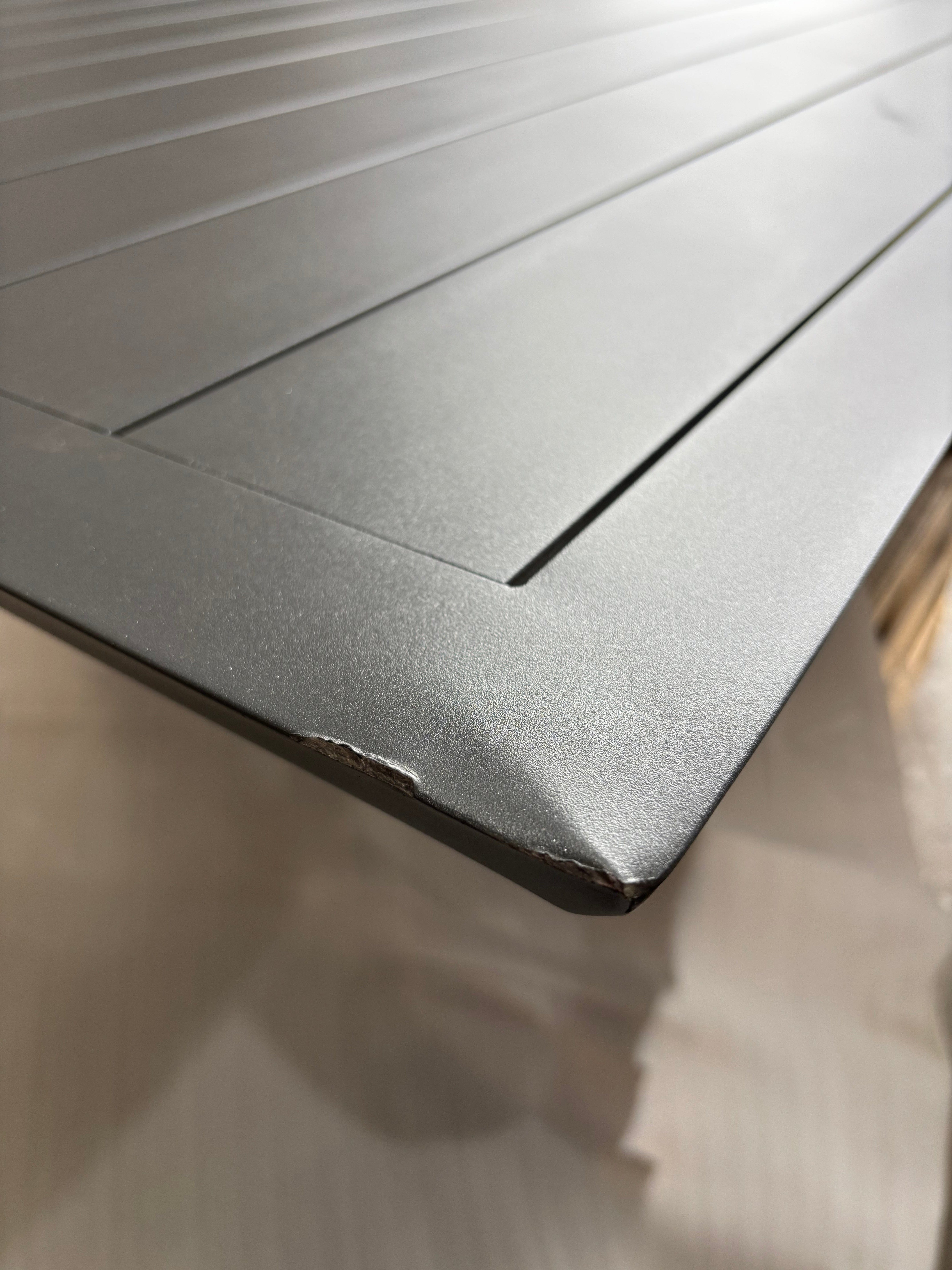 This is an ExDisplay item, two corners on the table top are damaged and slight scratches on the legs.