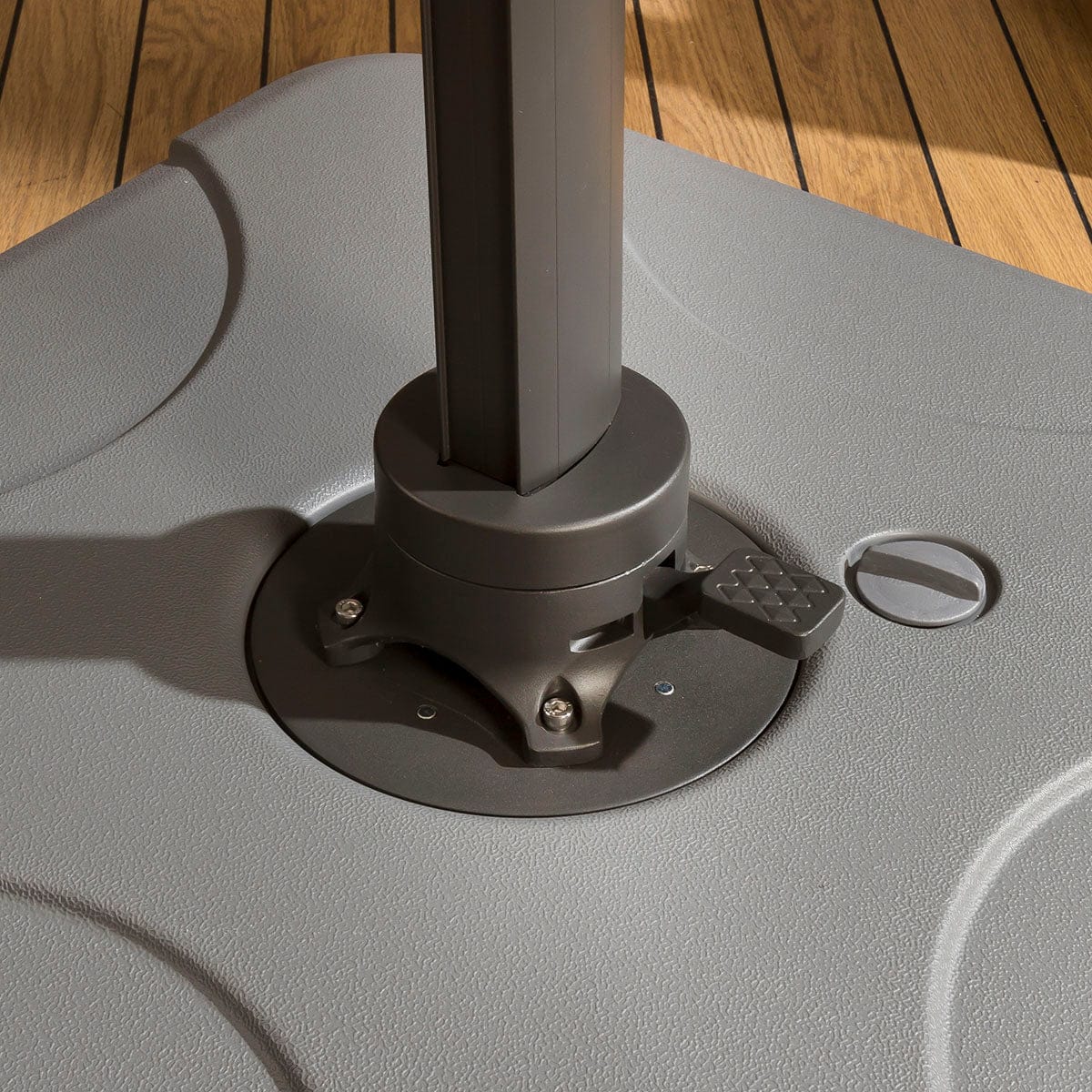 The parasol also comes complete with a very sturdy 120L base. Our market-leading grey garden parasol is designed with market-leading materials, including UV resistant, anti-fade polyester and powder-coated aluminium framing which will look great for many years to come.