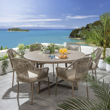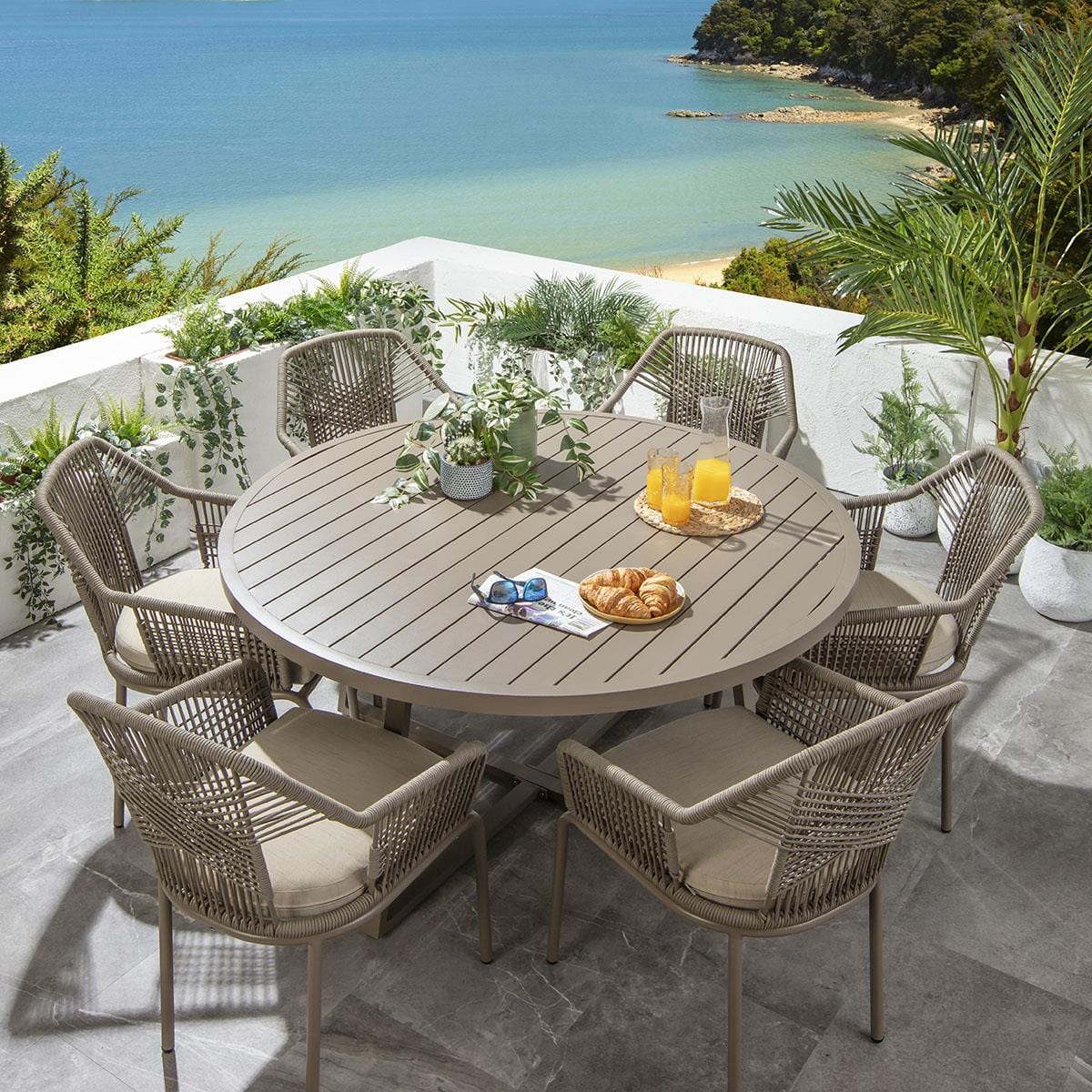 Cia 6 Seater Round Outdoor Garden Dining Set Aluminium Beige