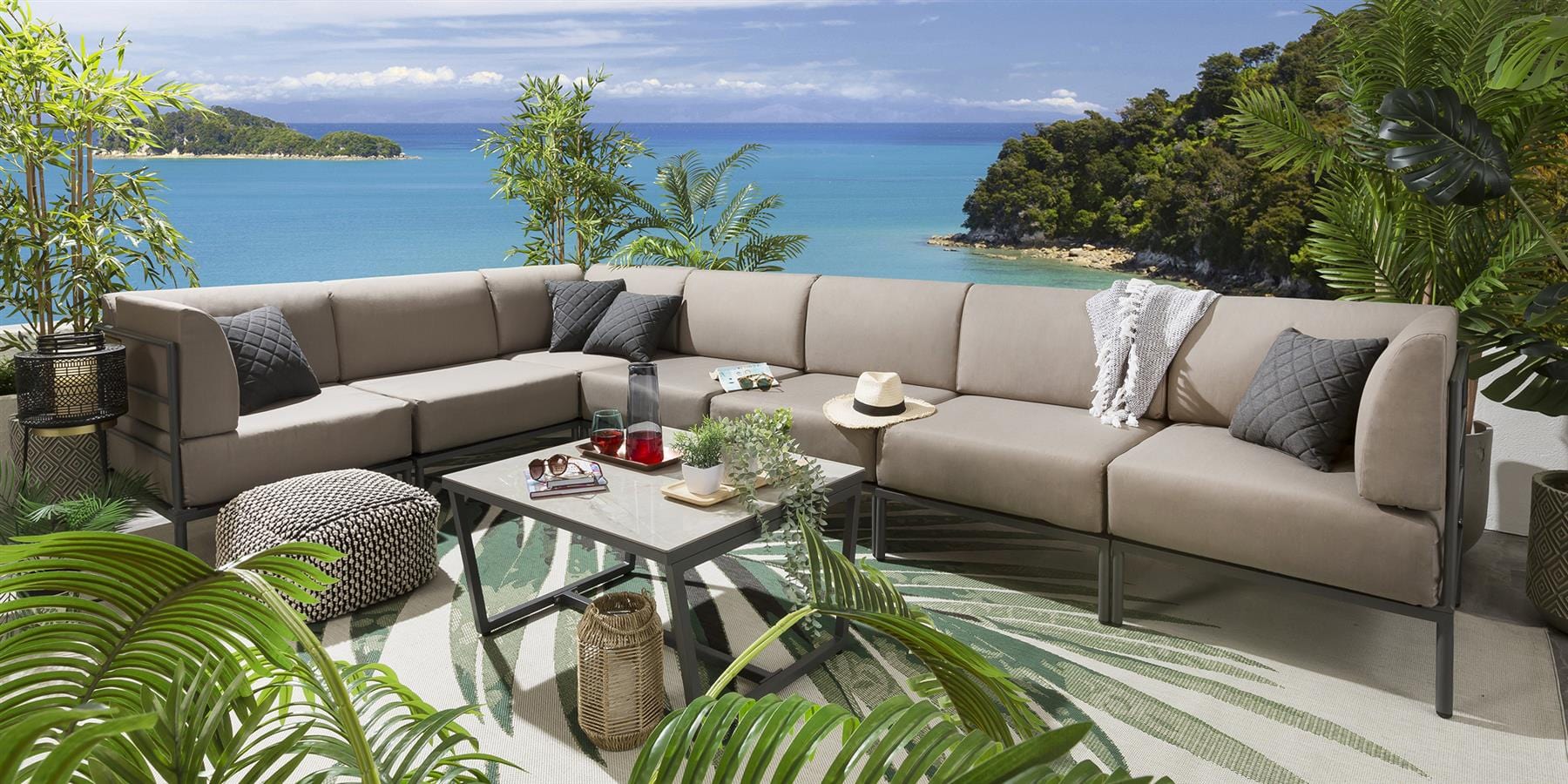 Alfie Modular Garden Corner Sofa Set Coffee 360x216cm L8