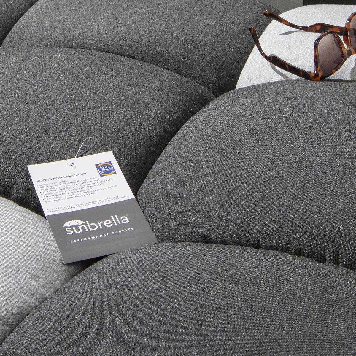 Crafted with dark grey Sunbrella marine fabric, this lounger is designed to withstand the elements while maintaining its elegance. The fabric is not only weather-resistant but also mold, mildew, and bleach cleanable, ensuring easy maintenance and longevity. Paired with an aluminium frame, this lounger combines style with durability for a premium outdoor experience.