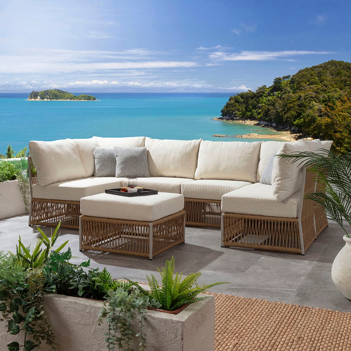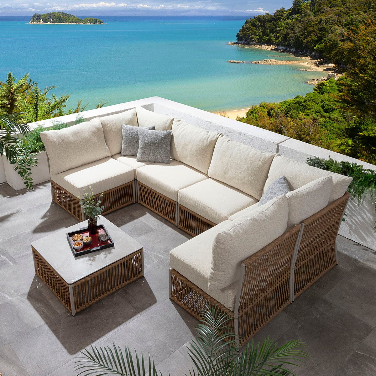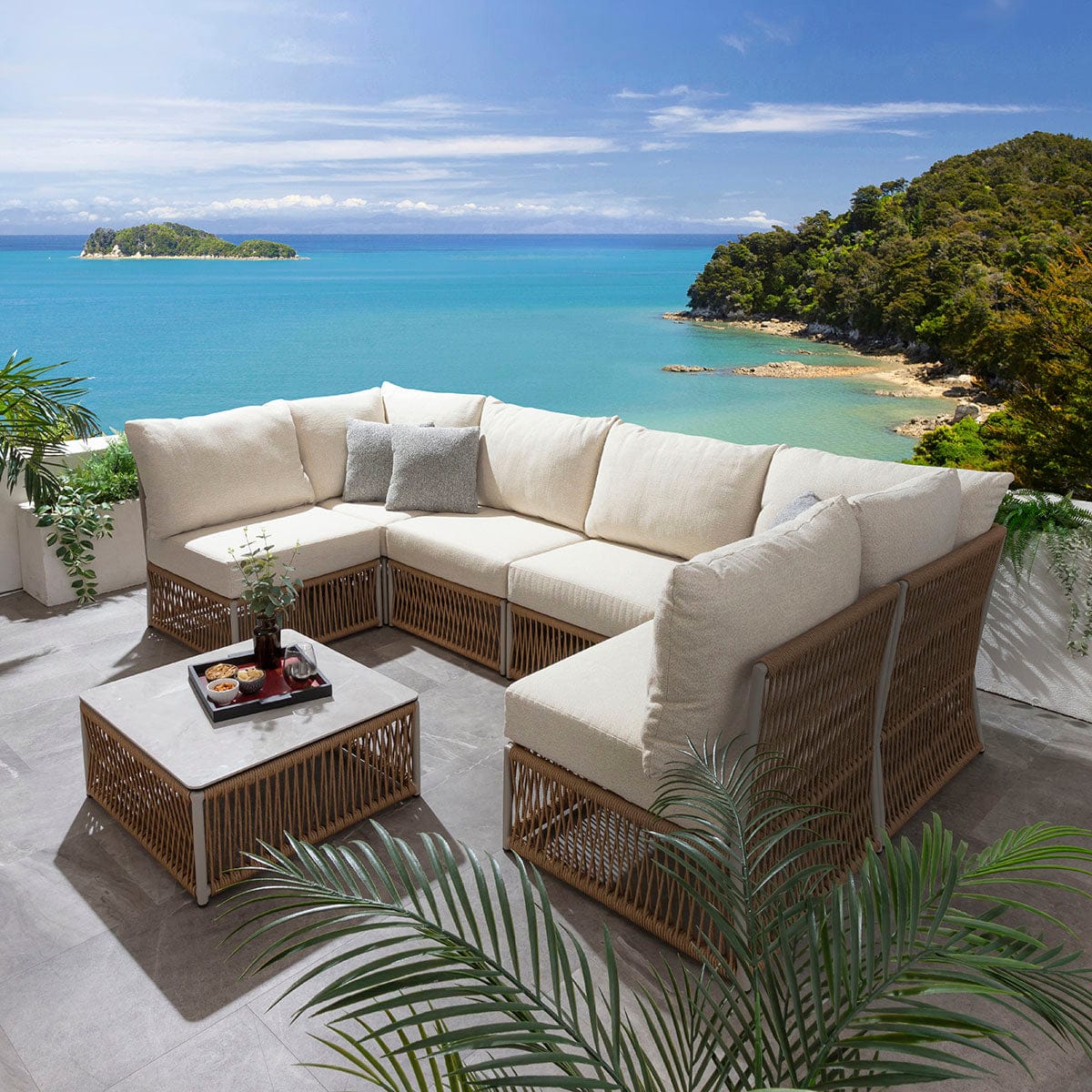 Cole Modular Outdoor U-Shape Garden Corner Sofa Set Neutral Honey 288x144cm U7