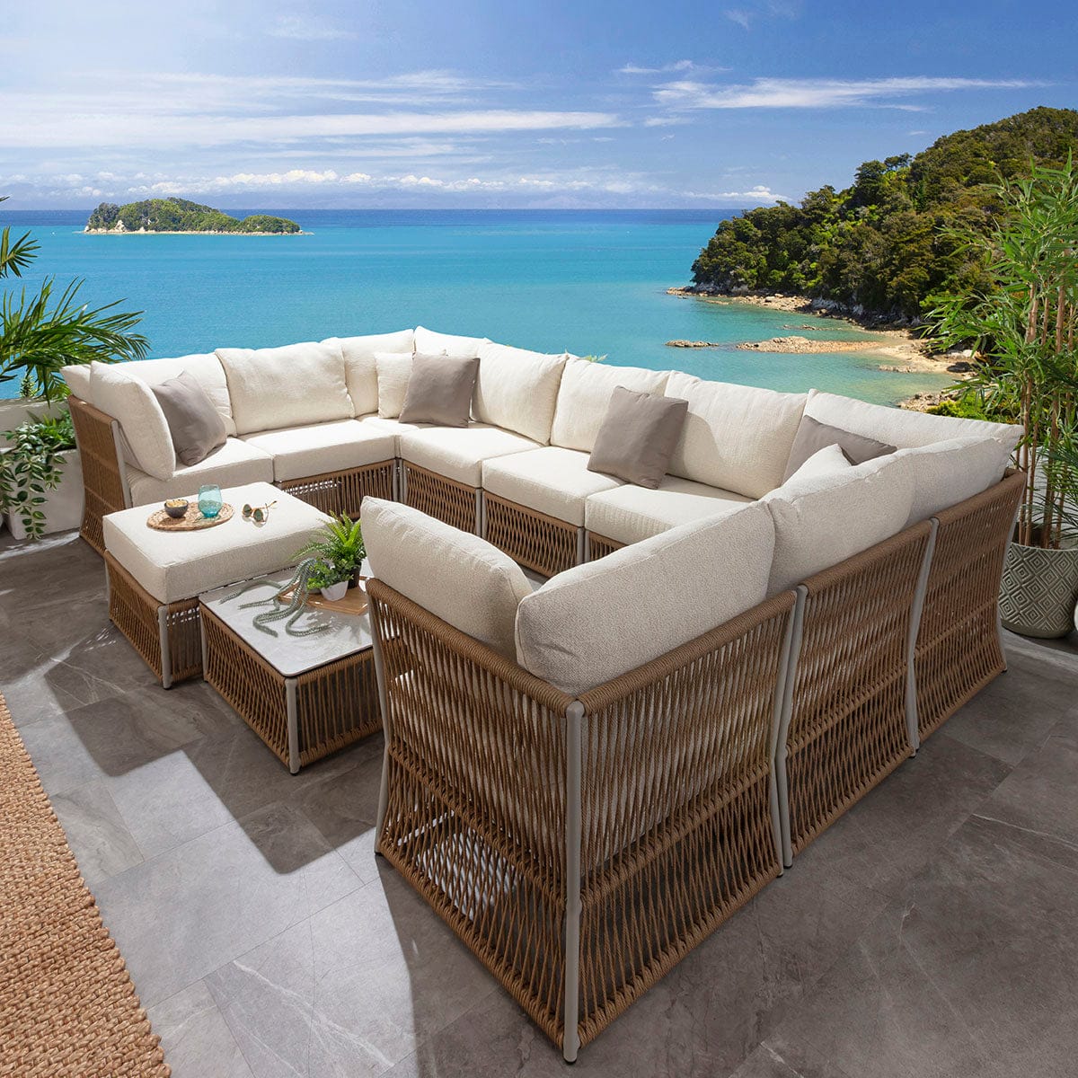 Cole Modular Outdoor U-Shape Garden Corner Sofa Set Neutral Honey 358x218cm U11