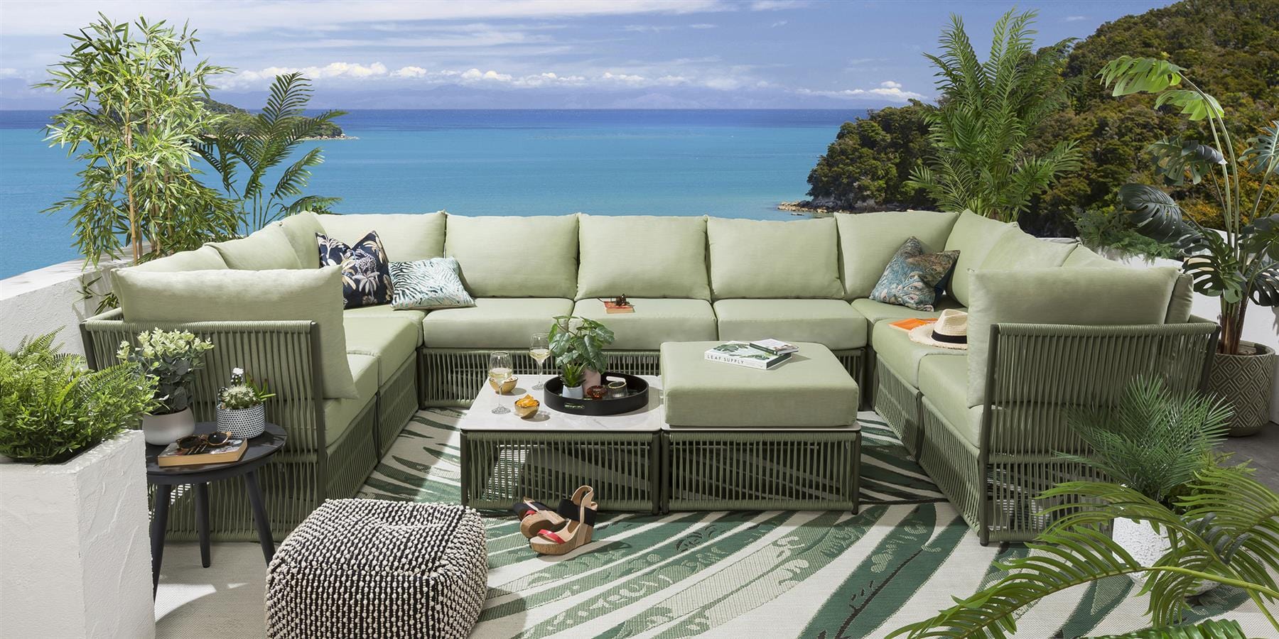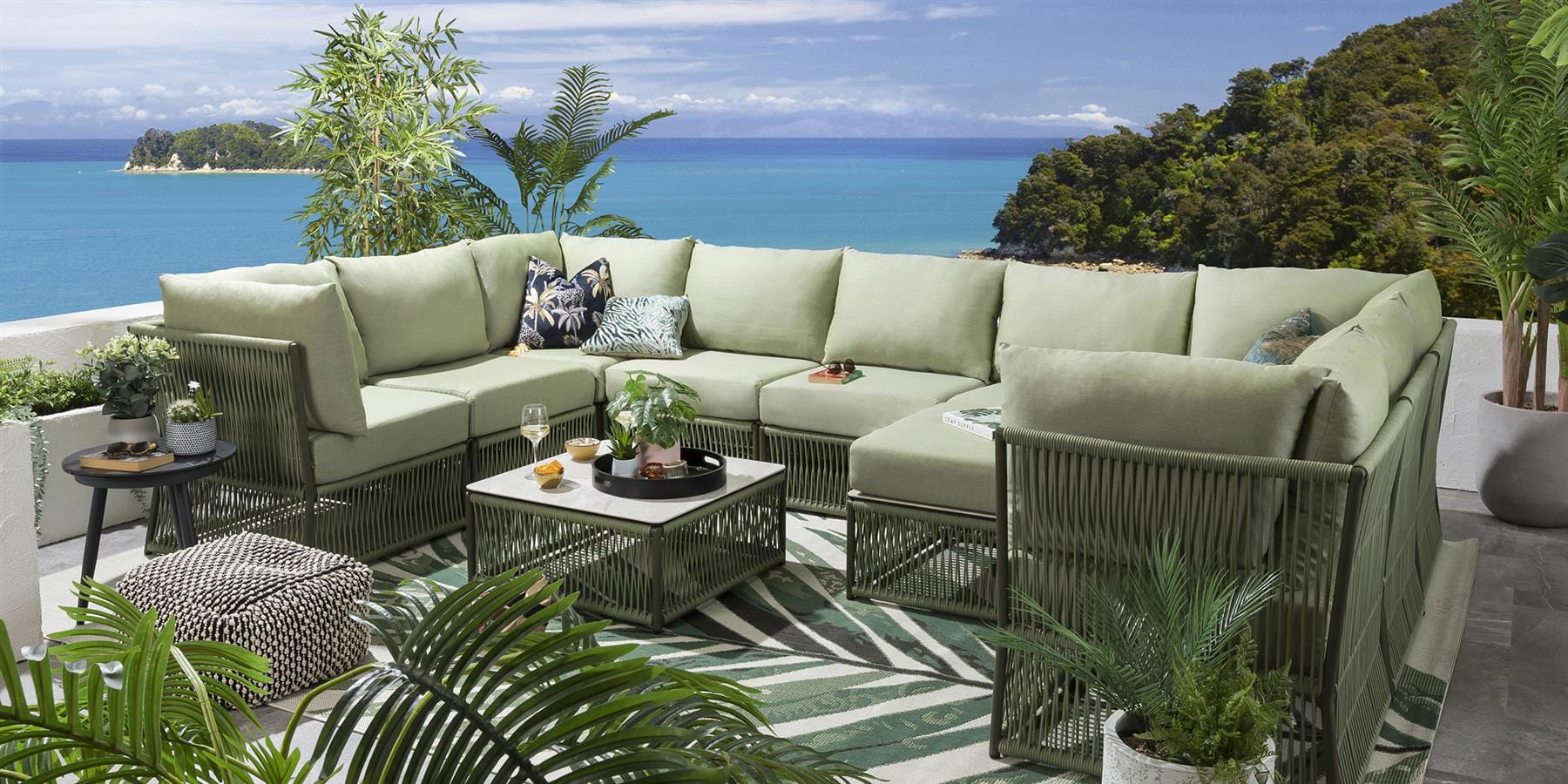 Cole Garden U Shaped Corner Sofa Set Green 358x218cm U11