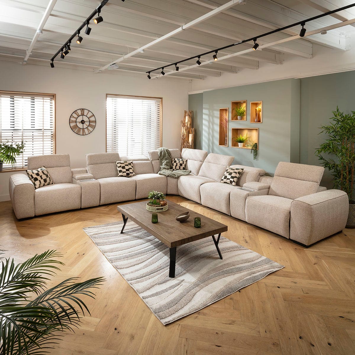 Experience the ultimate in comfort and versatility with our Lola recliner modular sofa, designed for modern living spaces. A spacious 7 seater L-shape sofa, this large corner settee combines luxury features with premium materials, offering durability and style. The sectional sofa with recliner functionality provides advanced relaxation, while its modular structure allows flexibility in layout. For those seeking a corner recliner settee that balances sophistication with practicality, this luxury modular sofa is the ideal choice.
