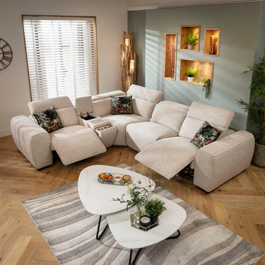 Lola Modern 4 Seater Recliner Corner Sofa & Console Beige 296x253cm 5C1