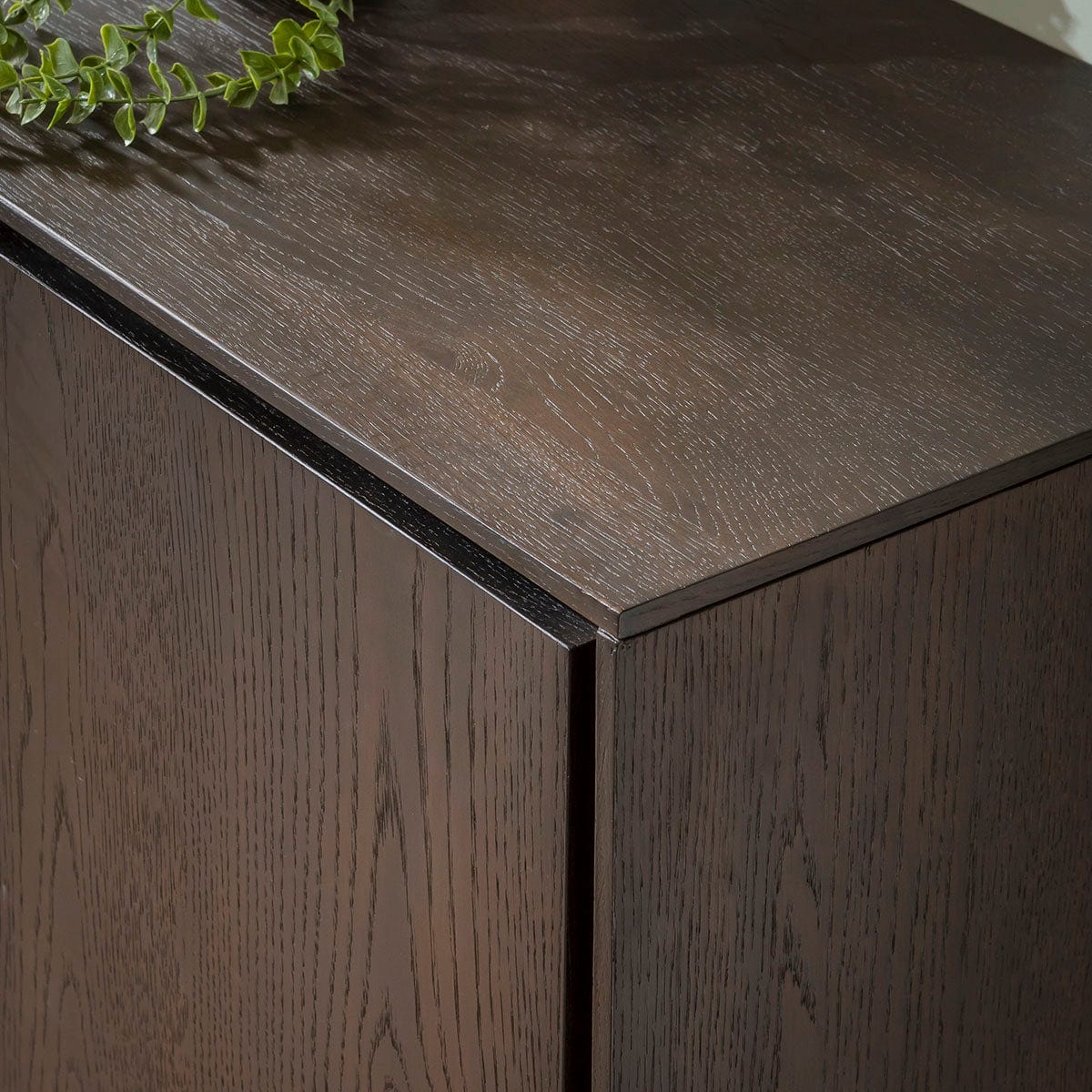 This extra large sideboard combines premium craftsmanship with bold modern design, creating a statement piece for open interiors. A contemporary sideboard finished in dark oak veneer, it blends clean lines with practical functionality. As a large wooden sideboard and modern buffet, it offers substantial storage while showcasing timeless mid century style.