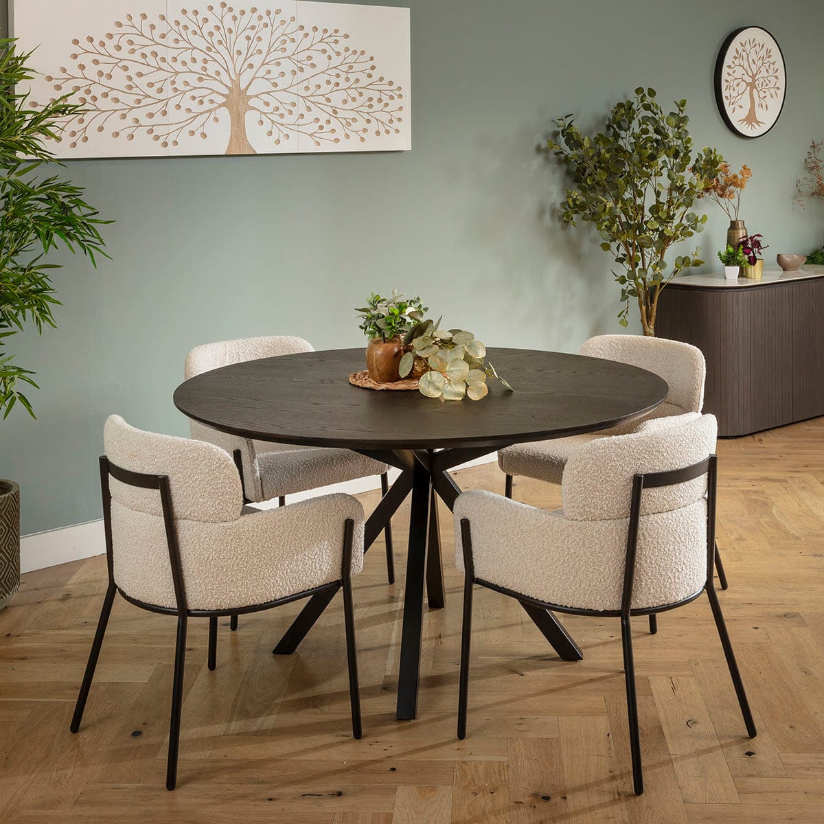 Lily & Grado Round 4 Seater Dining Set Cream Boucle & Dark Oak