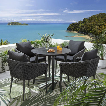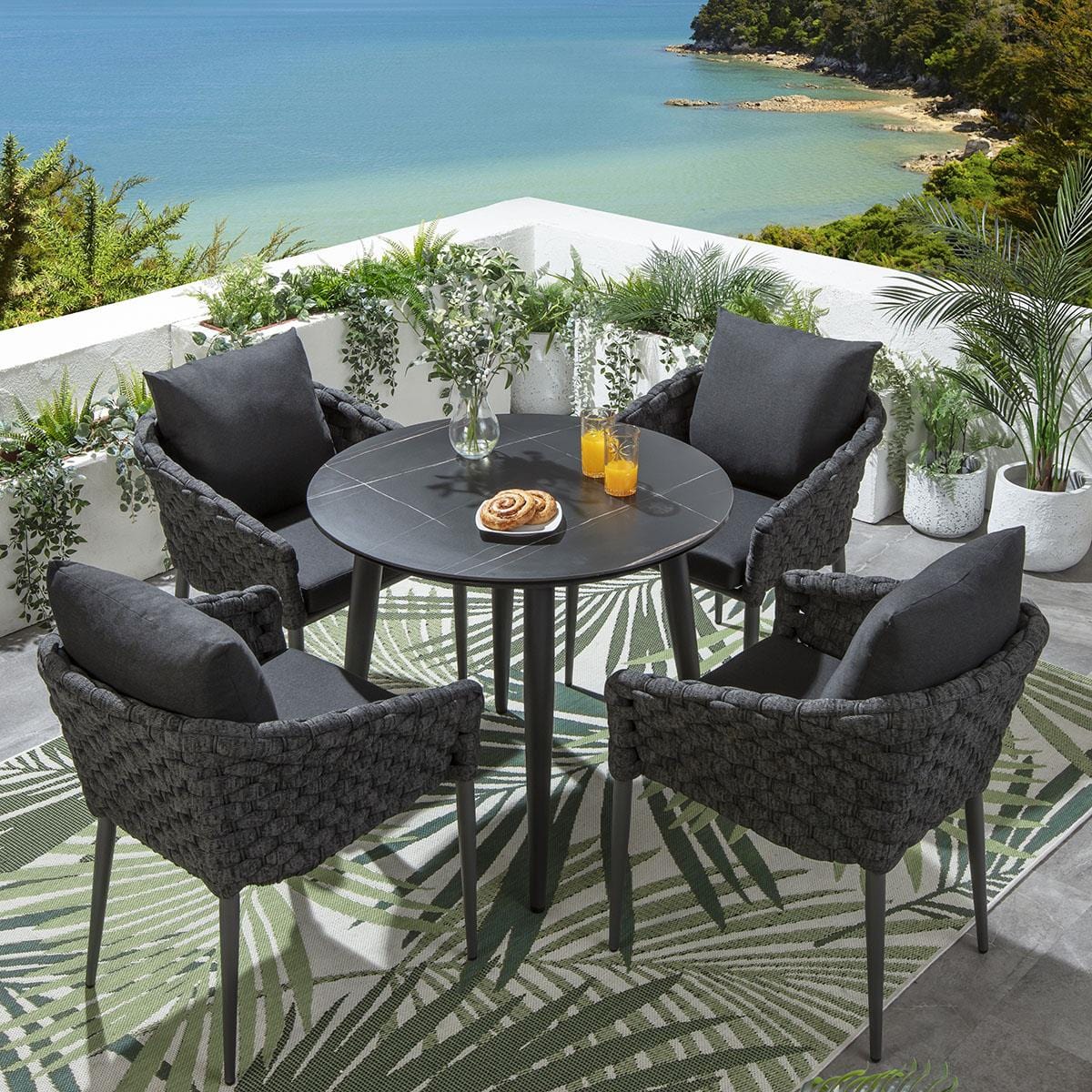 Sundowner 4 Seater Round Ceramic Outdoor Dining Set Charcoal & Black