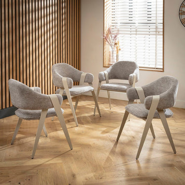 Sink into soft cushioning across both seat and back, designed for a luxurious, supportive feel during every meal or conversation. Upholstered in grey textured chenille, the fabric offers tactile depth and durability, making it ideal for lively households while maintaining a premium, tailored look with enduring comfort.