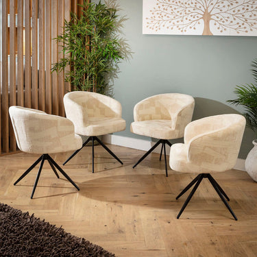 4 Lyla Modern Swivel Dining Chairs White & Cream Fabric