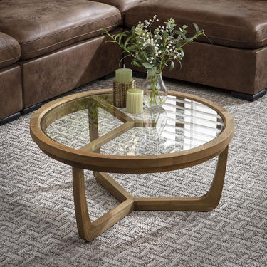 Ariana Round Wooden Coffee Table Natural Oak & Glass 80cm