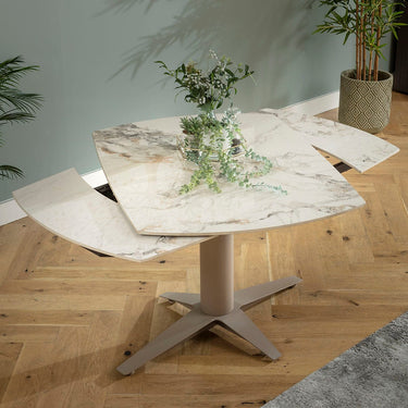 Johnson 6 Seater Ceramic Marble Extendable Dining Table White & Beige 120-160cm