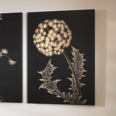 This large wood wall art is a striking hand-carved dandelion design, crafted from durable Paulownia wood. Featuring bold, modern style, it brings a unique touch to any space. Perfect as wall decor or wall artwork, it adds sophistication to your home with its black and natural wood contrast.